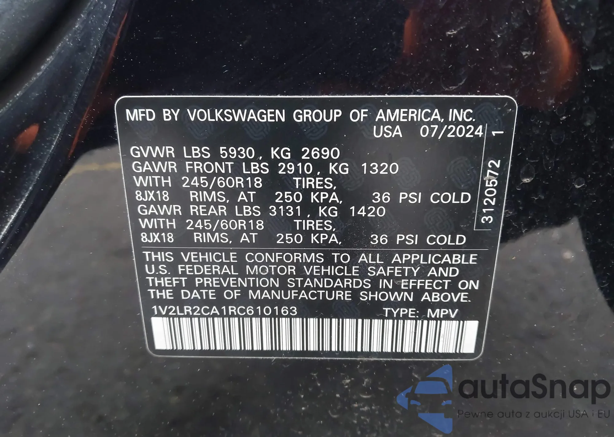 • VIN 1V2WP2CA6MC520857