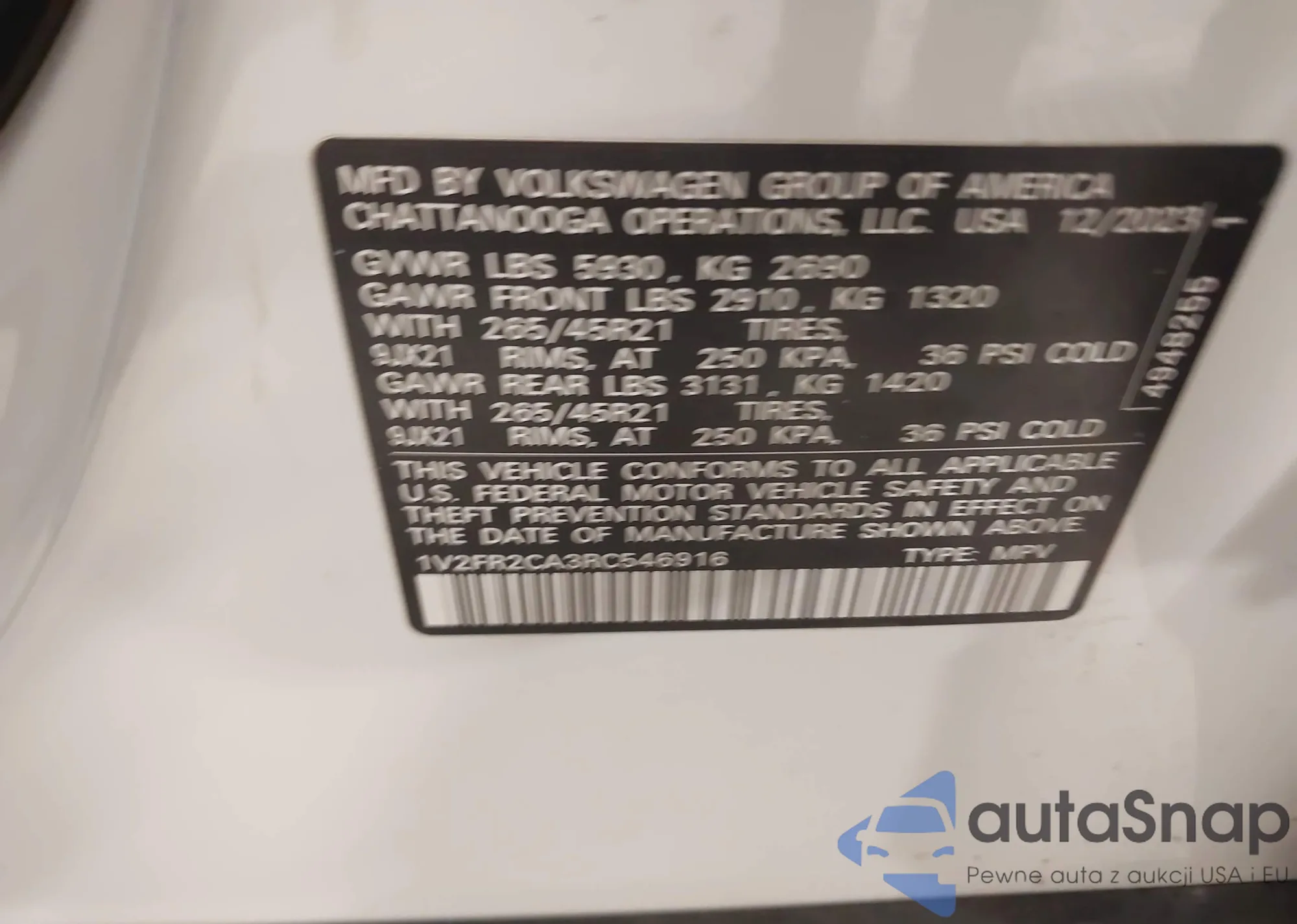 LOT: 44132954 VIN: 1V2FR2CA3RC546916