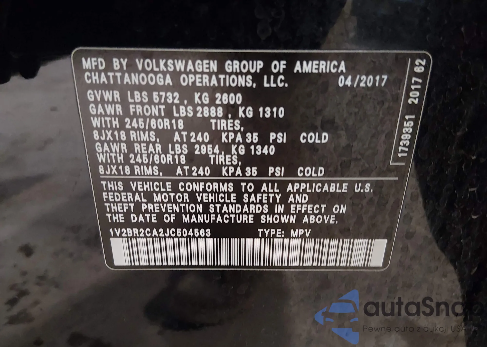 • VIN 1V2BR2CA2JC504563
