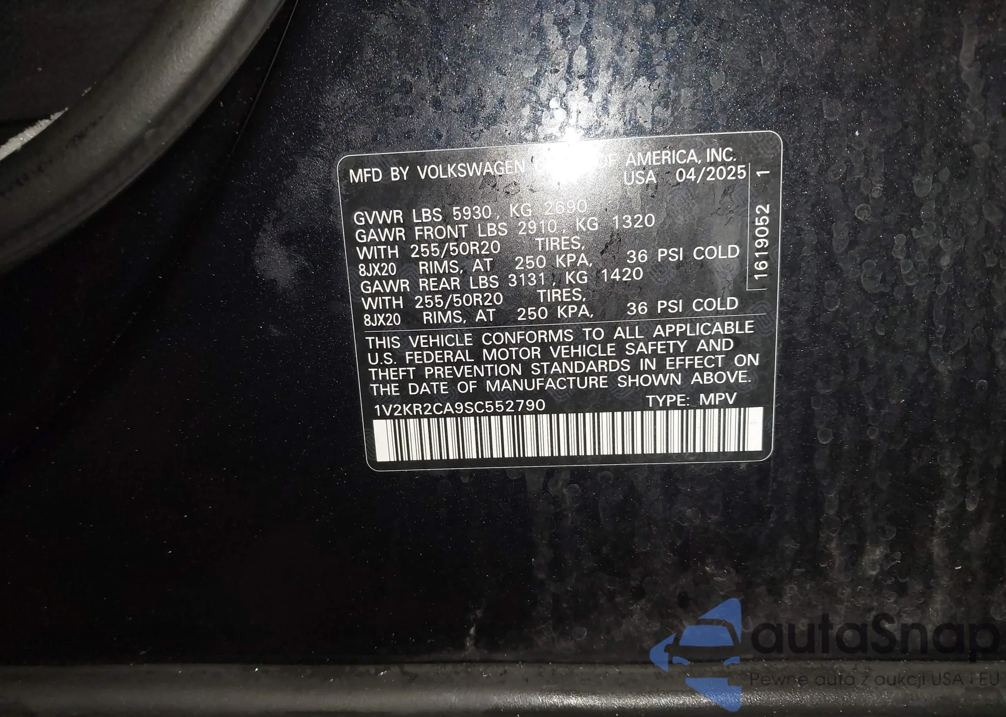 • VIN 1V2KR2CA9SC552790