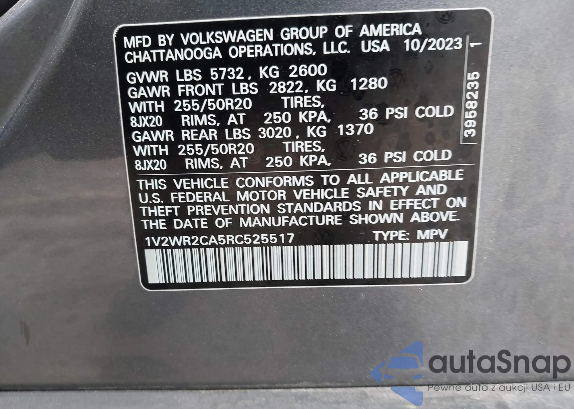 • VIN 1V2KR2CA0MC592341