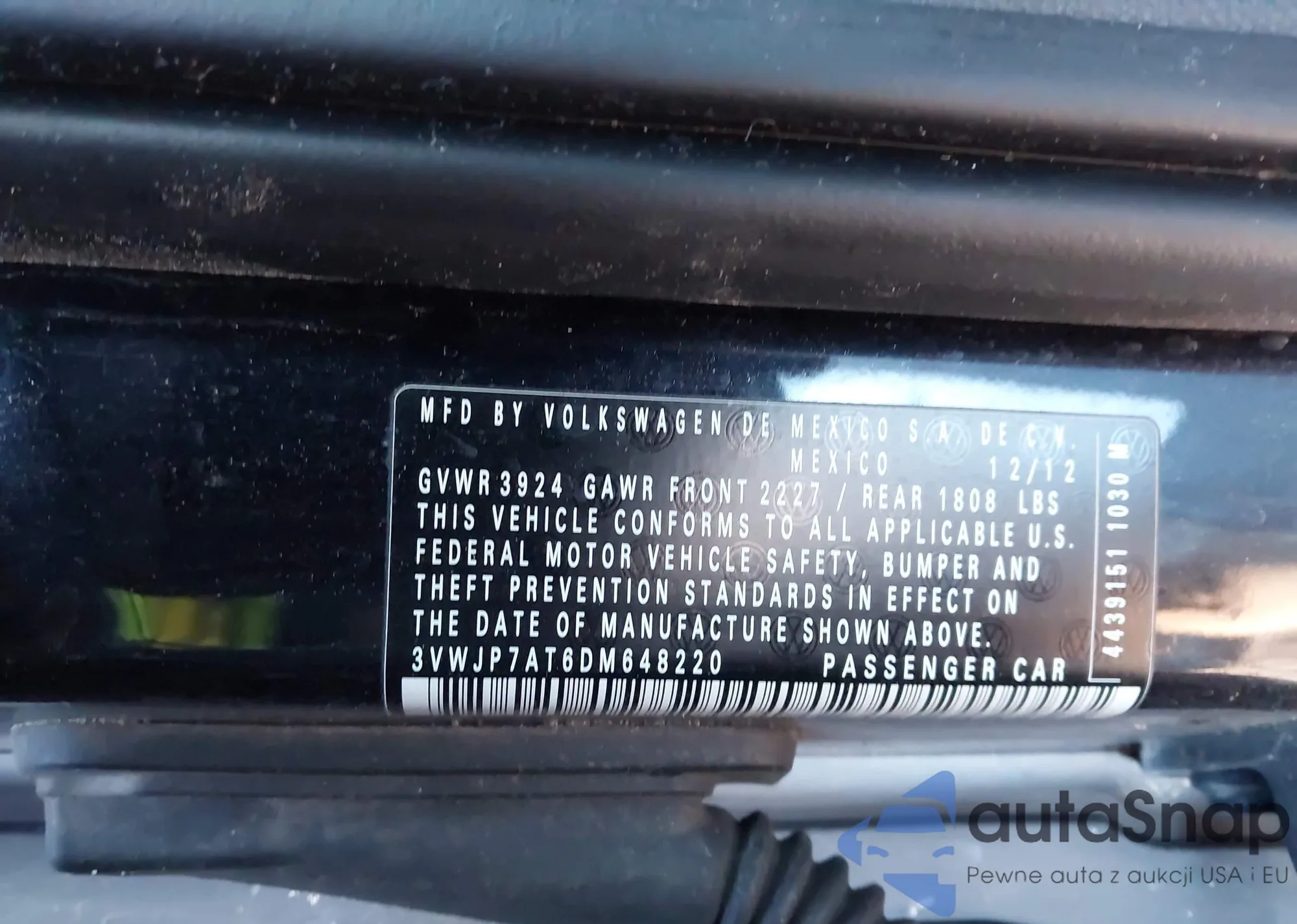 • VIN 3VWJP7AT6DM648220
