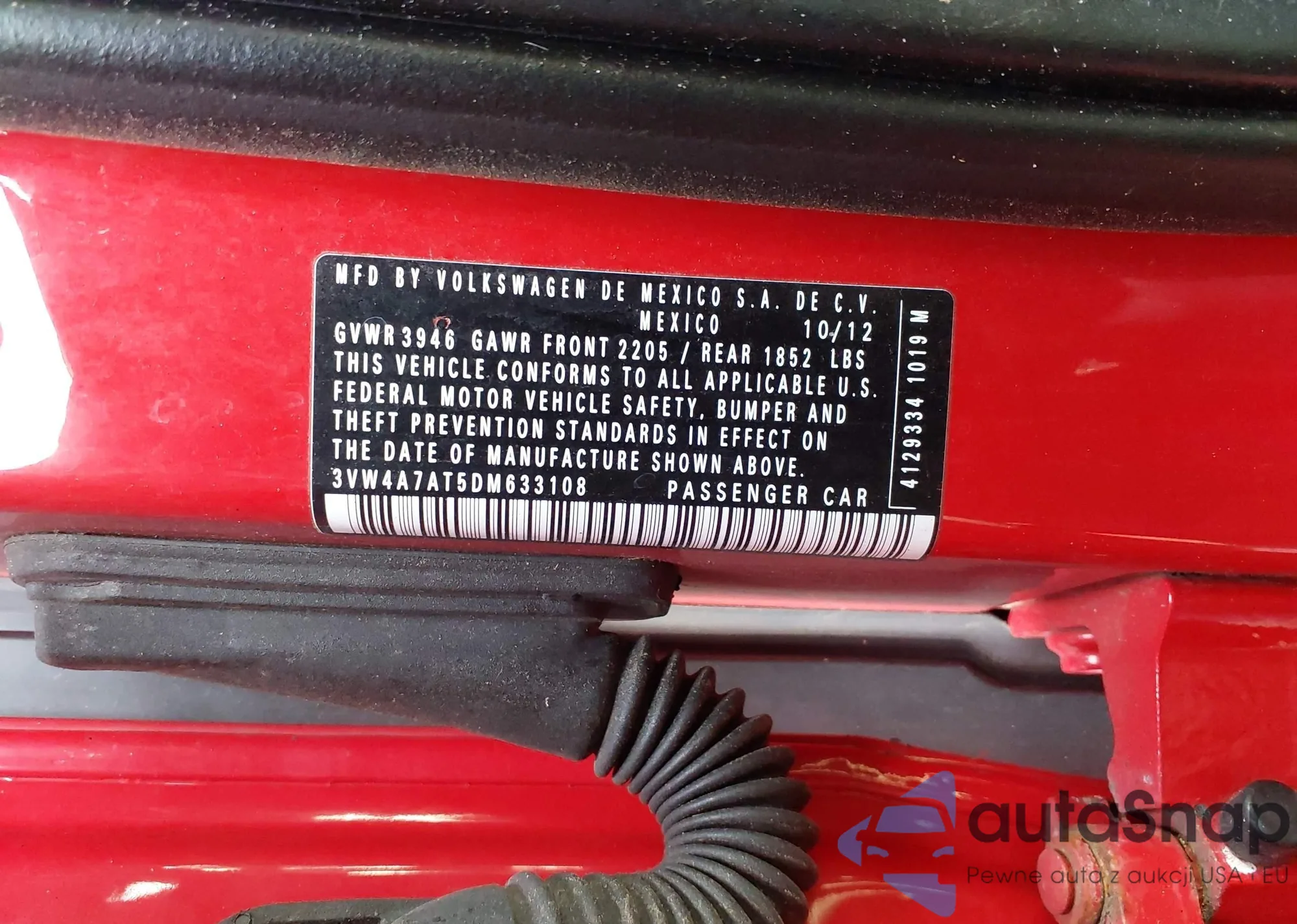 • VIN 3VW4A7AT5DM633108