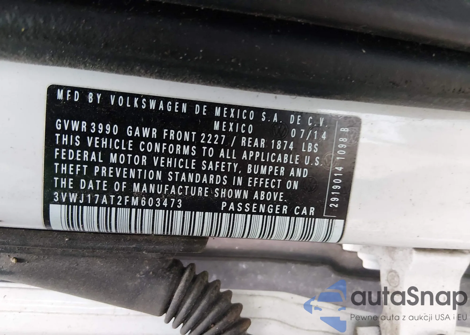 • VIN 3VWJ17AT2FM603473