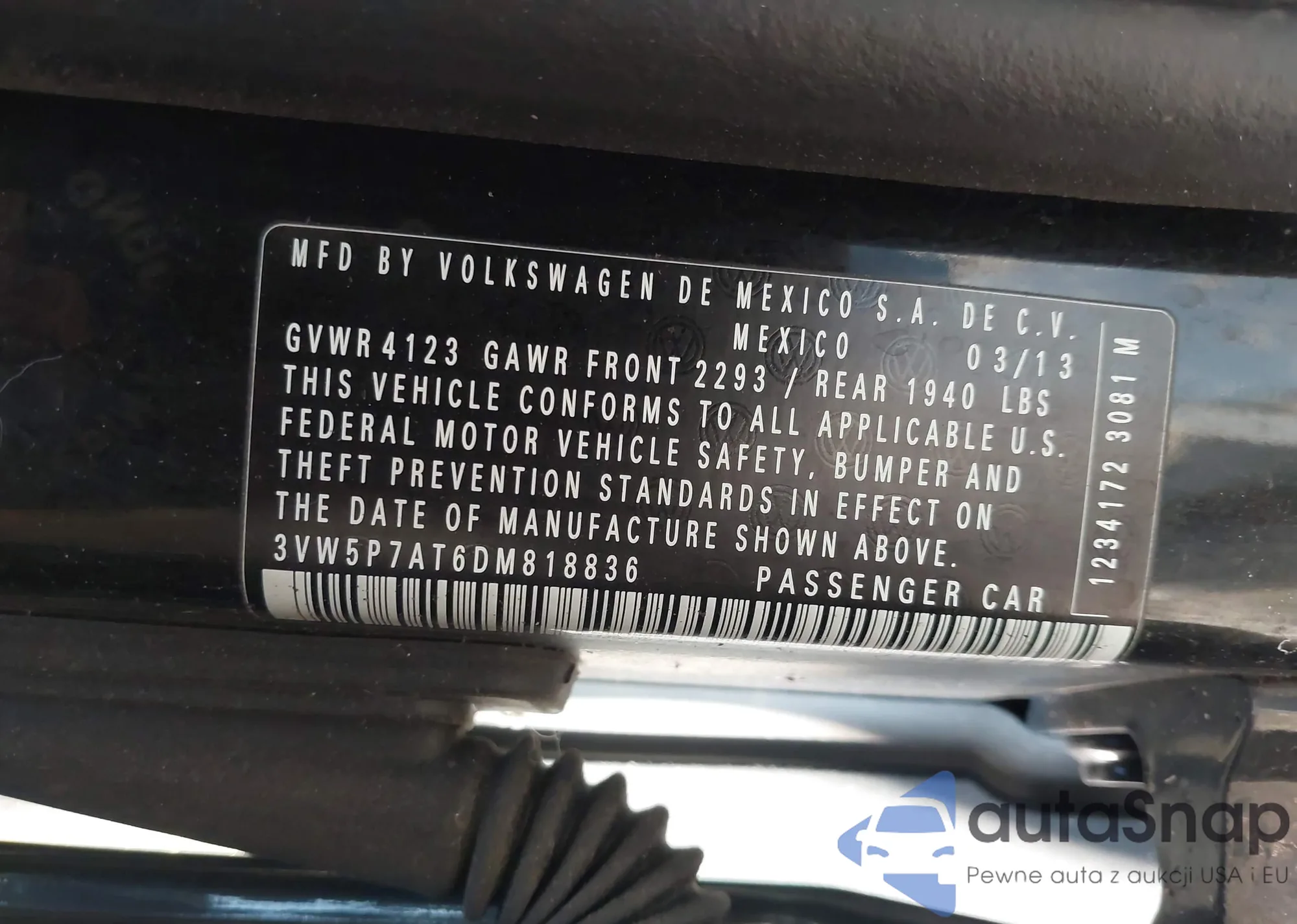 • VIN 3VW5P7AT6DM818836
