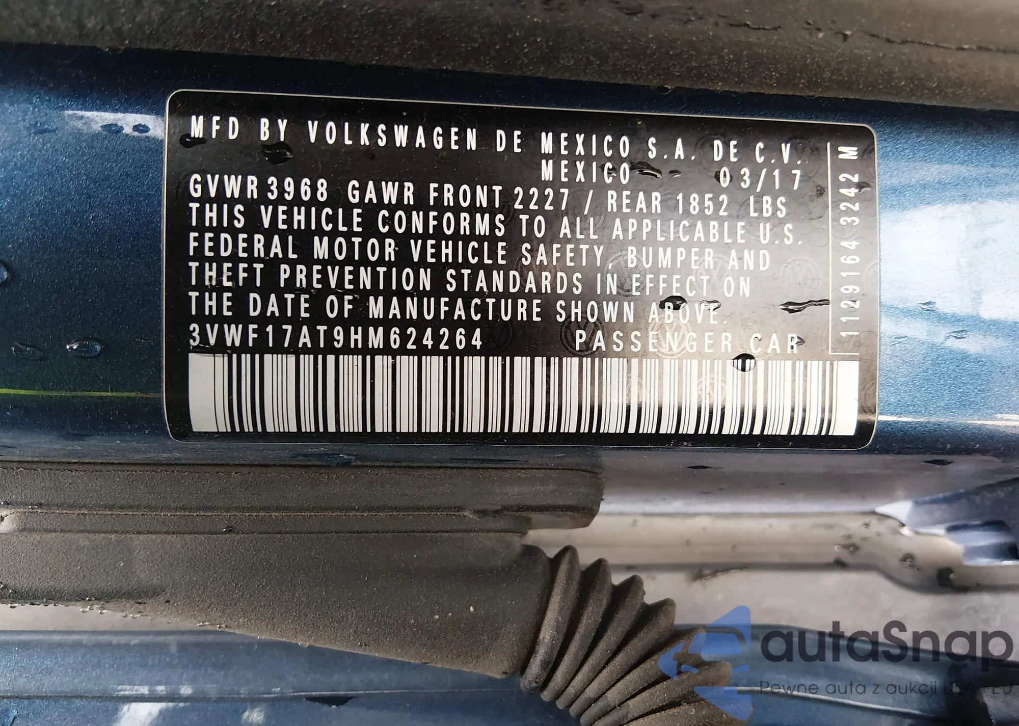 • VIN 3VWF17AT9HM624264