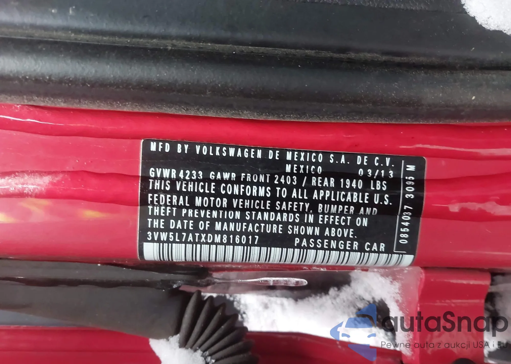 • VIN 3VW5L7AT3DM812763