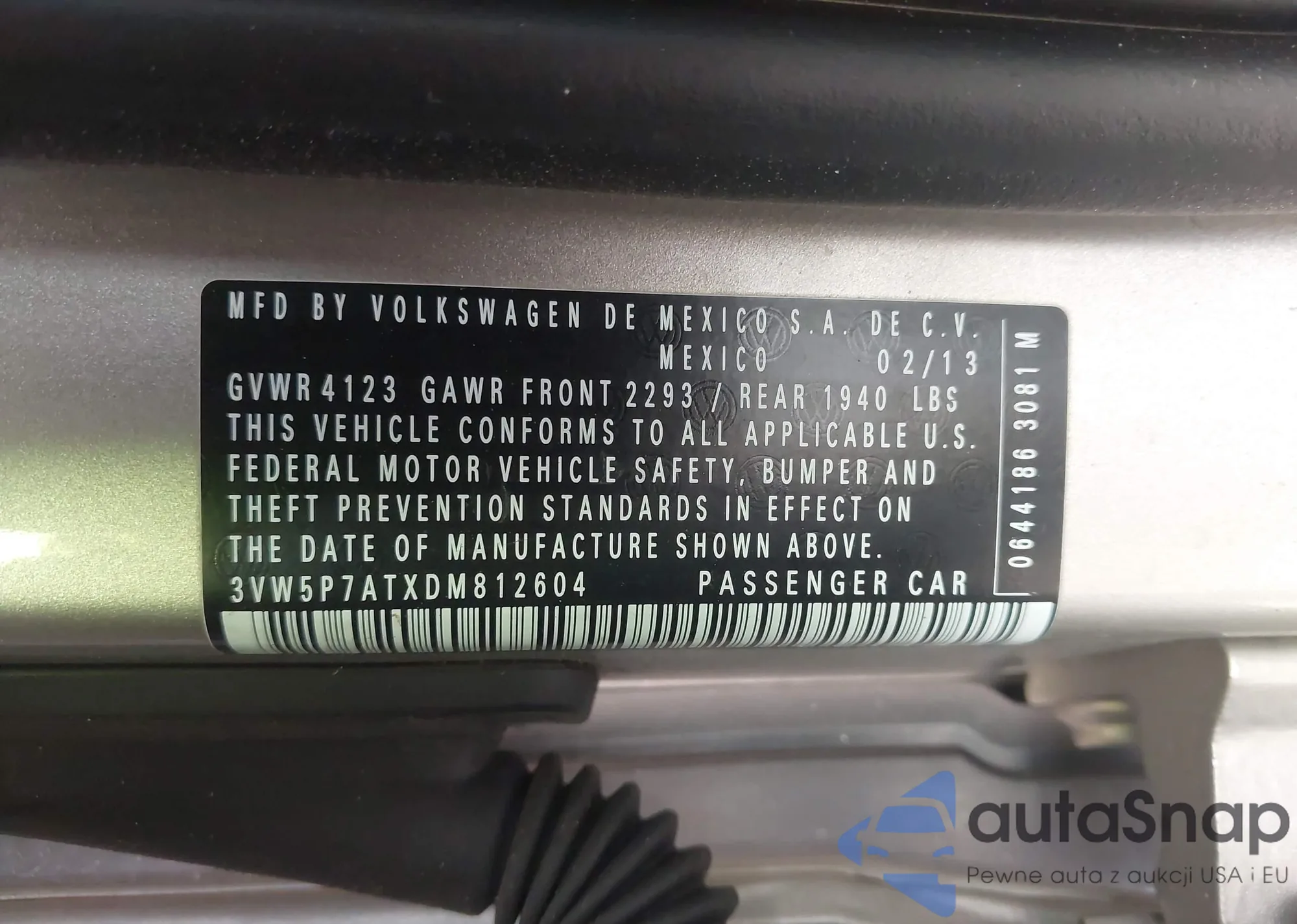 • VIN 3VW5P7ATXDM812604