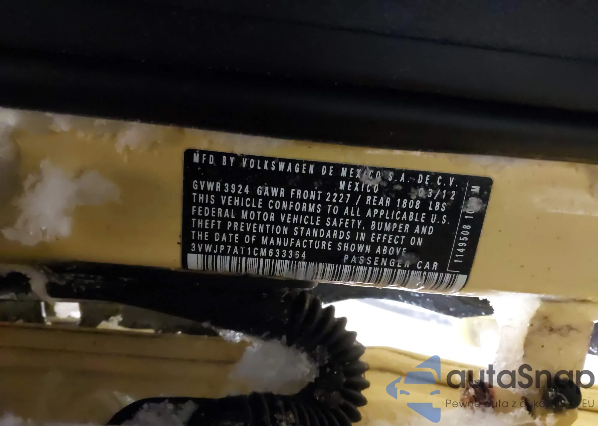 • VIN 3VWJP7AT1CM633364