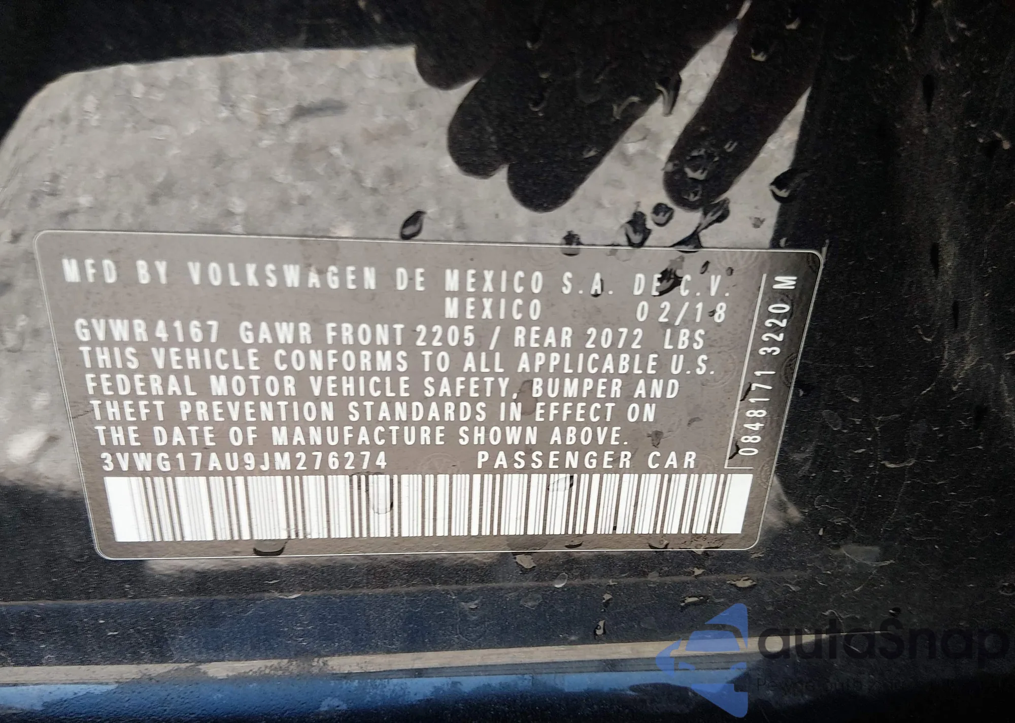 • VIN 3VWG17AU9JM276274