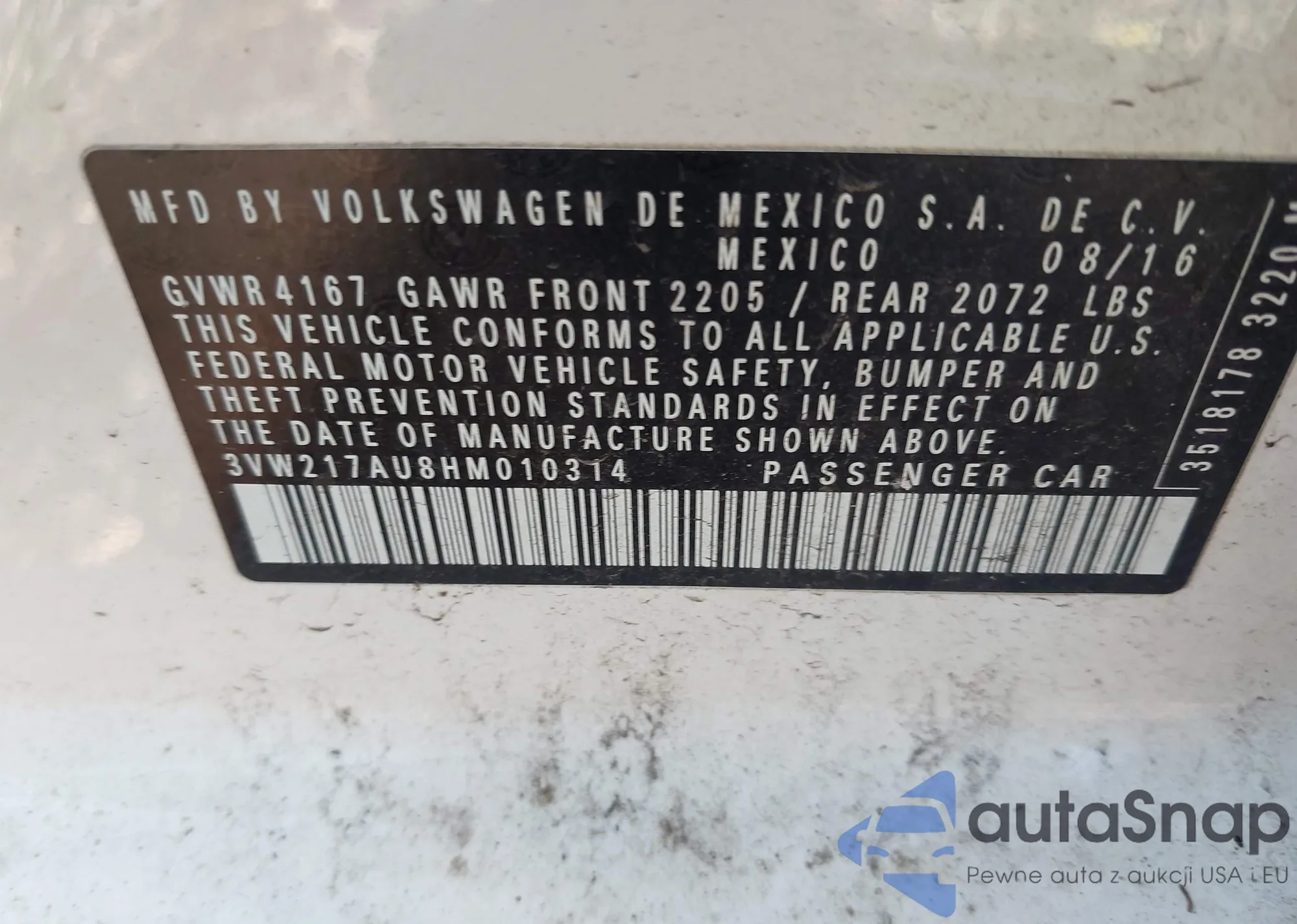 • VIN 3VW217AU8HM010314