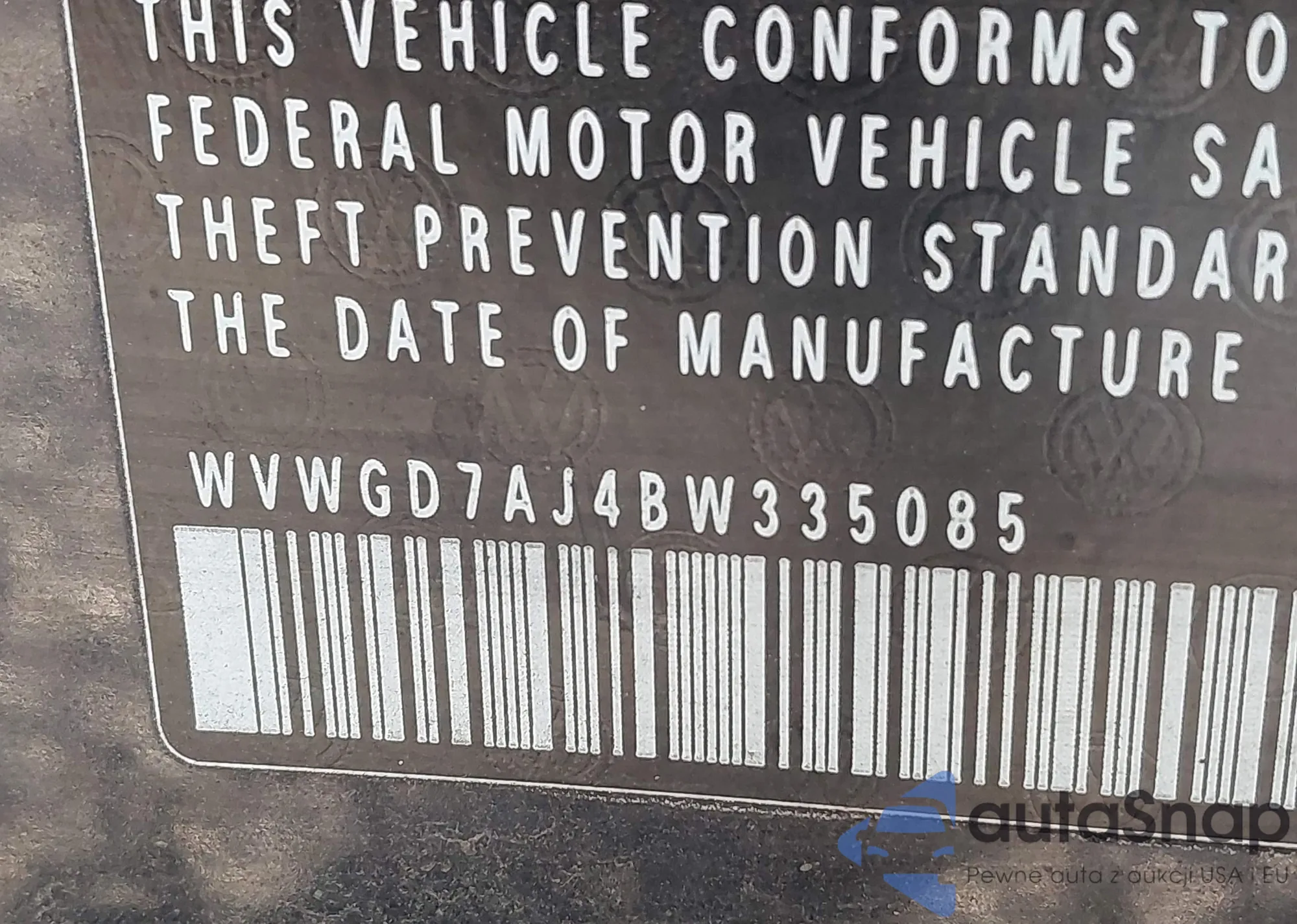• VIN WVWGD7AJ4BW335085