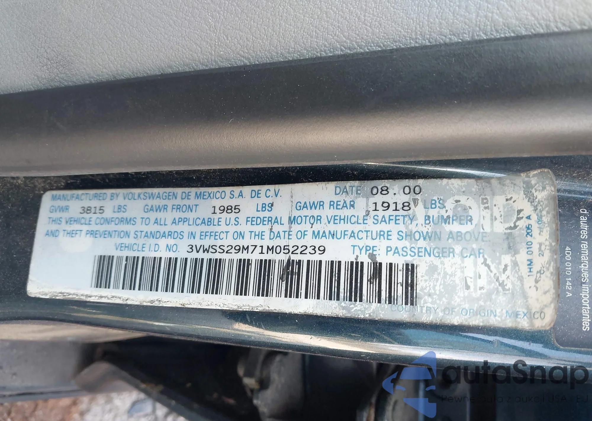 • VIN 3VWSS29M71M052239