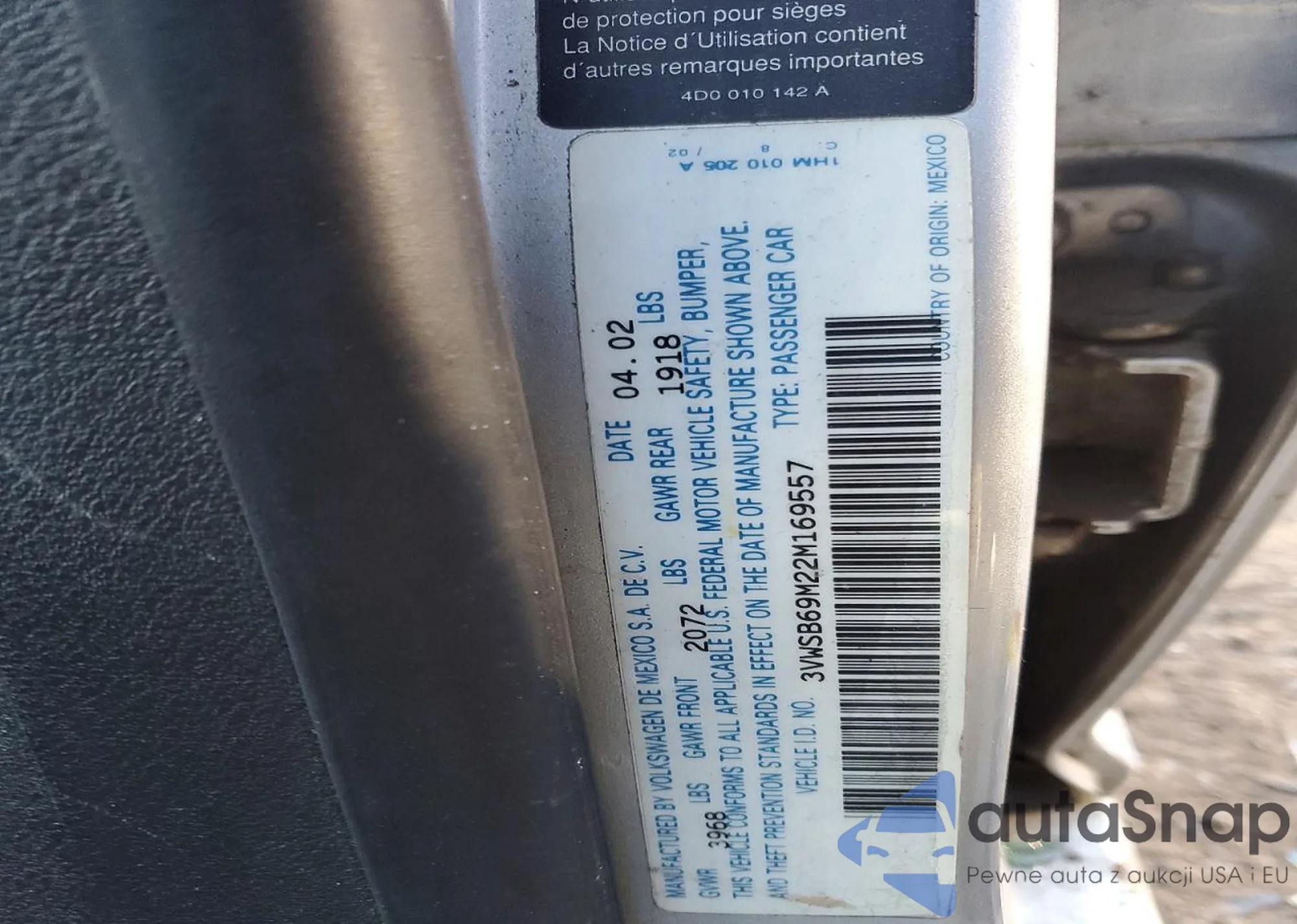 • VIN 3VWSB69M22M169557