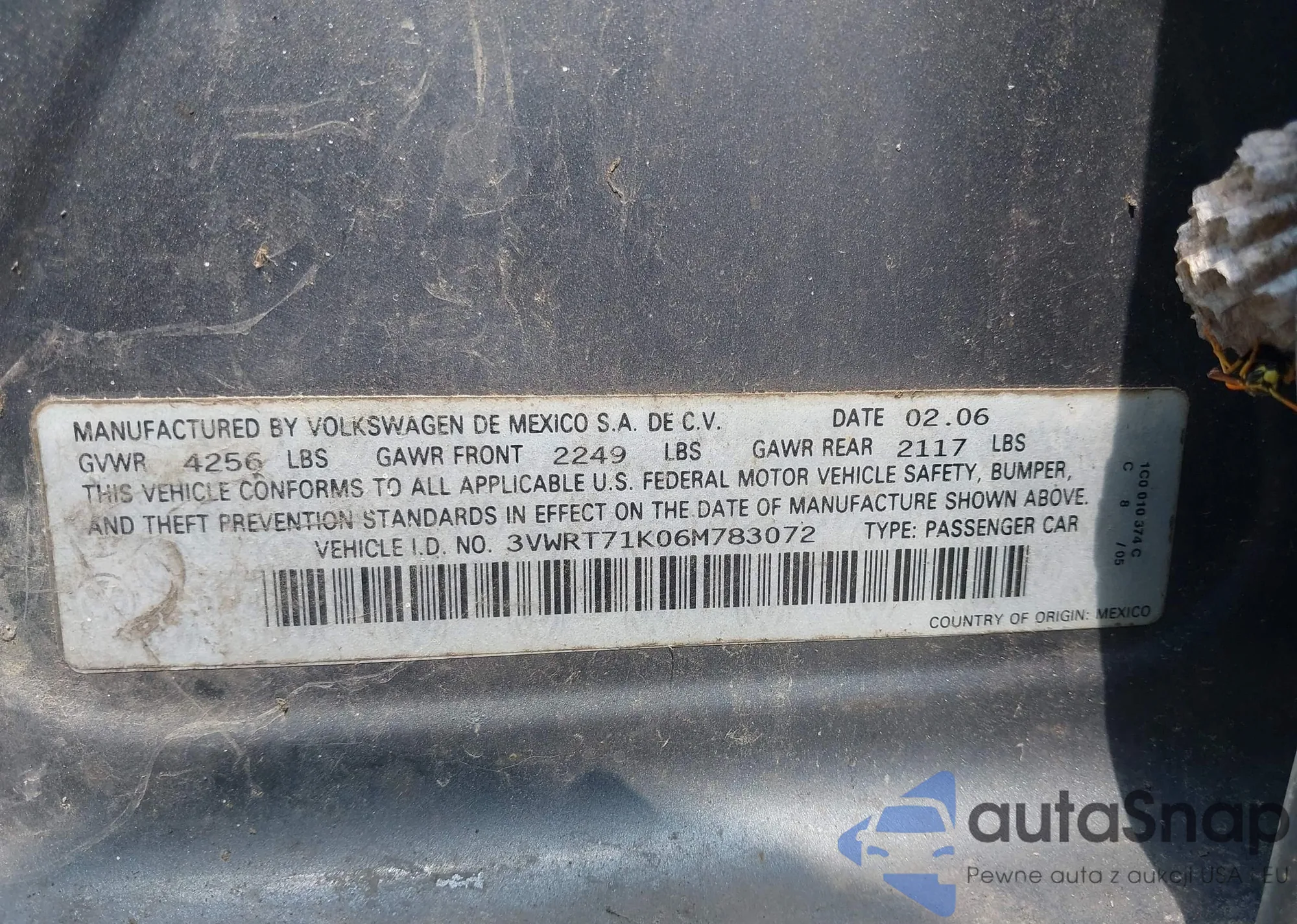 • VIN 3VWRT71K06M783072