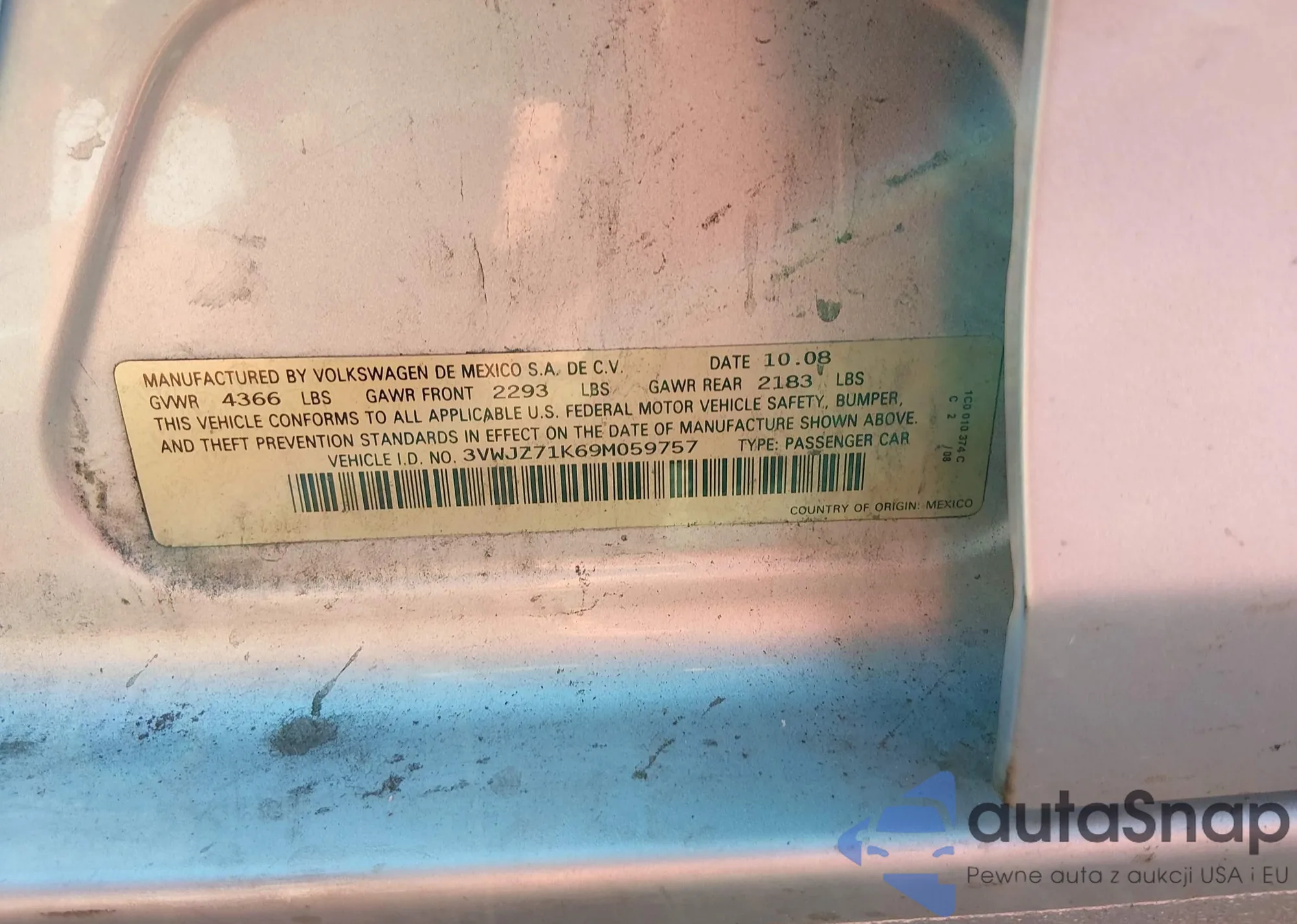 • VIN 3VWJZ71K69M059757