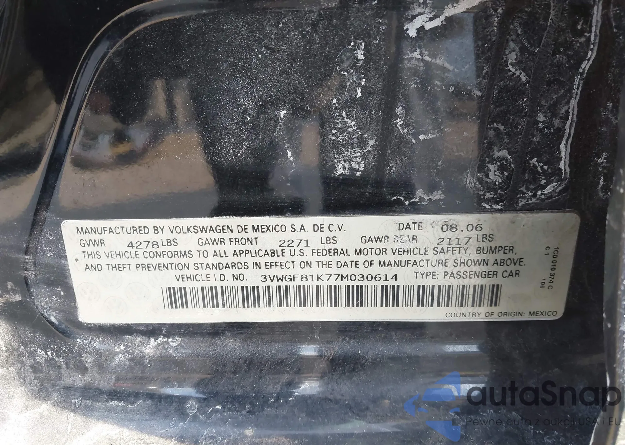• VIN 3VWGF81K77M030614