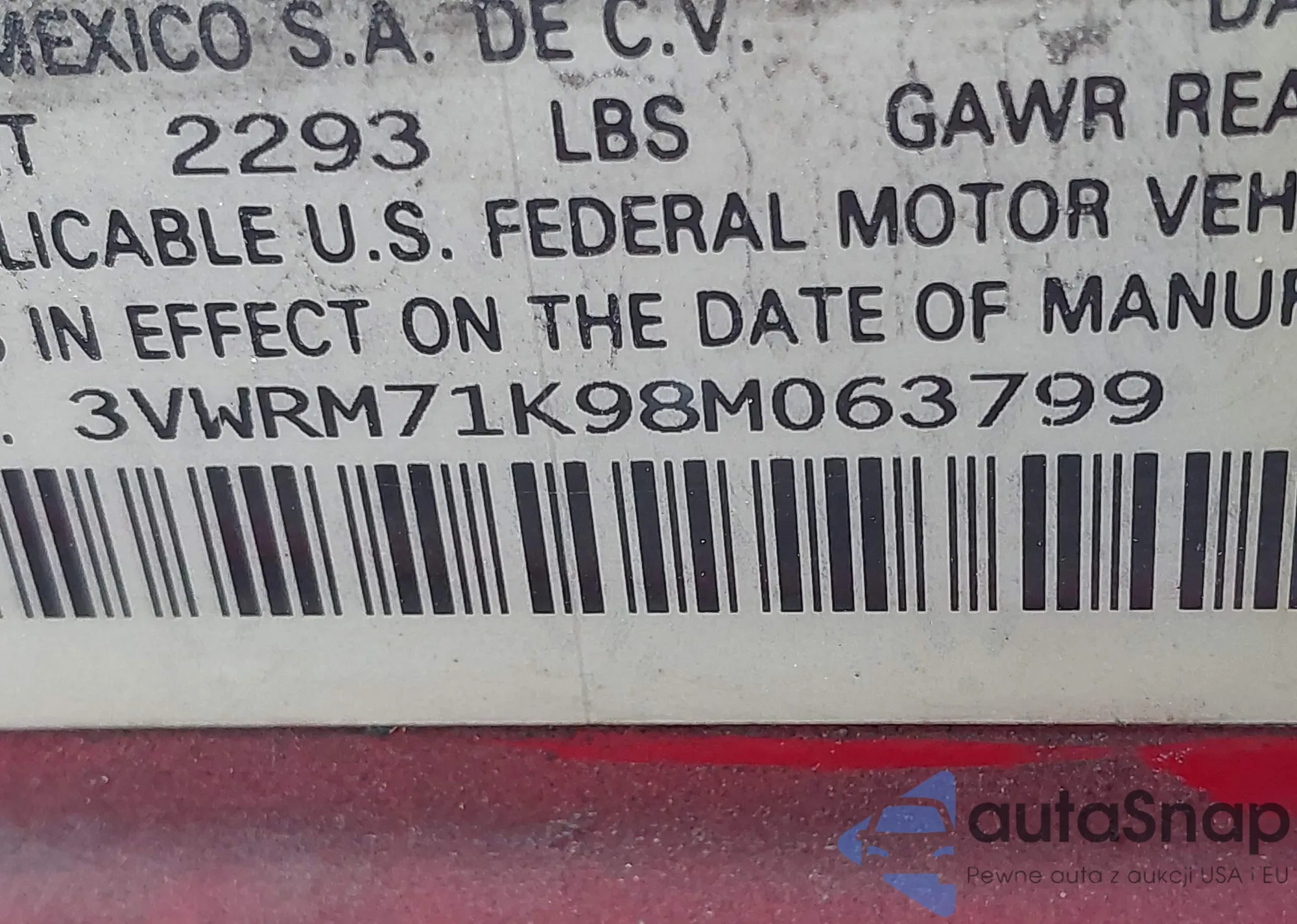 • VIN 3VWRM71K98M063799