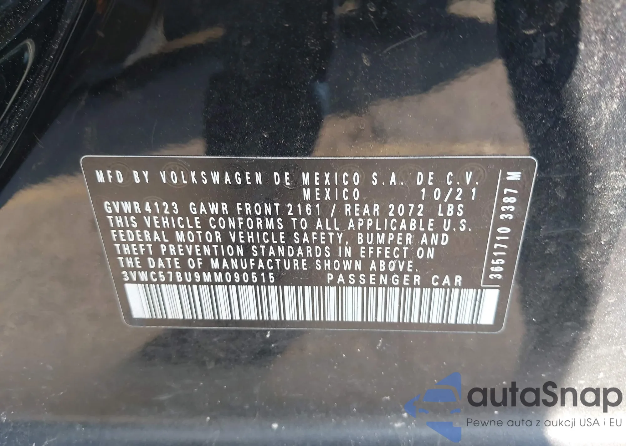 • VIN 3VWC57BU8MM046019