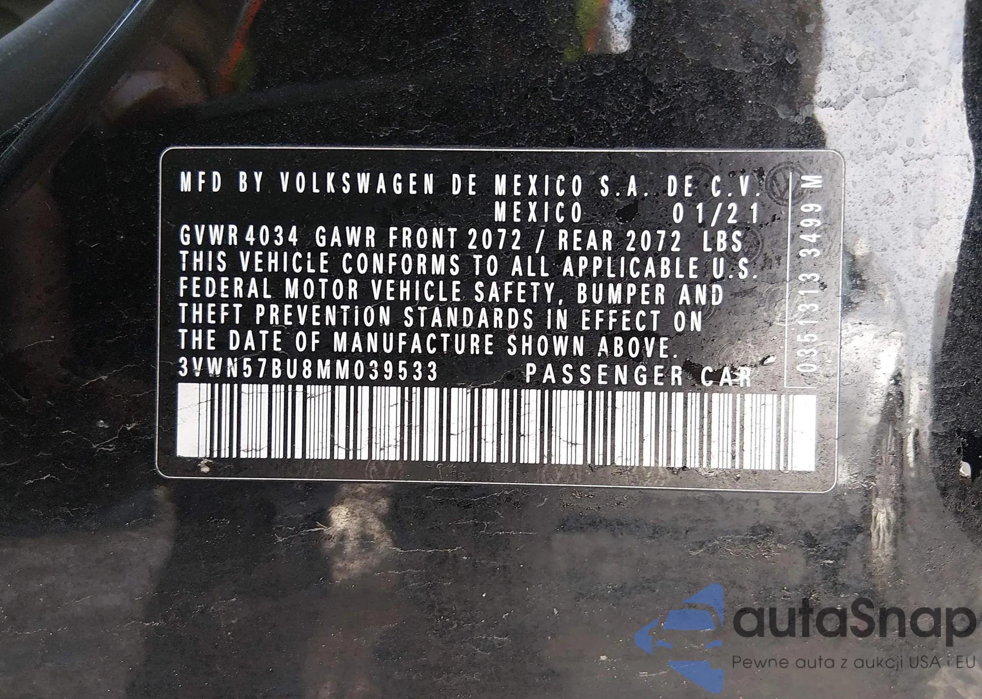 • VIN 3VWN57BU8MM039533