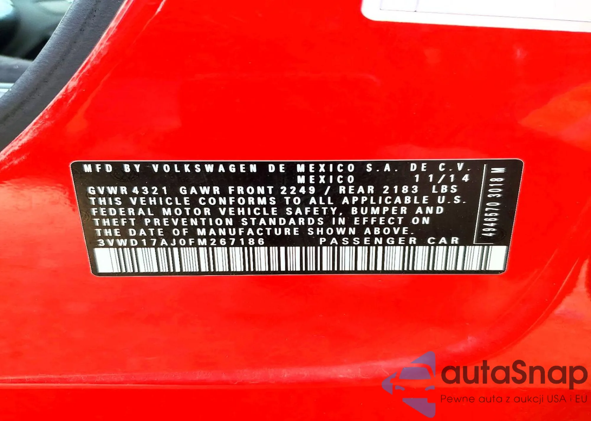 • VIN 3VWD17AJ0FM267186