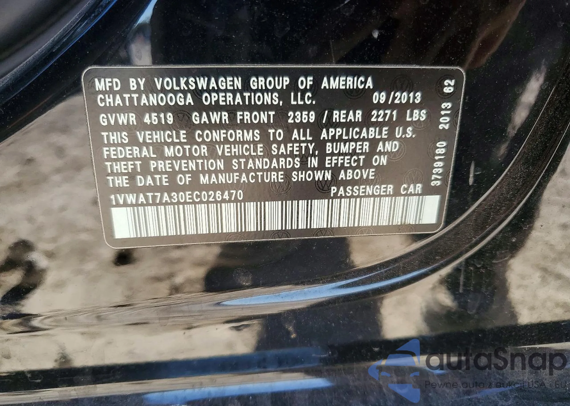 LOT: 72647355 VIN: 1VWAT7A30EC026470