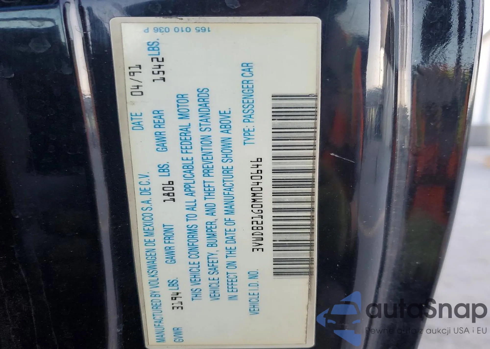 • VIN 3VWDB21G0MM040646