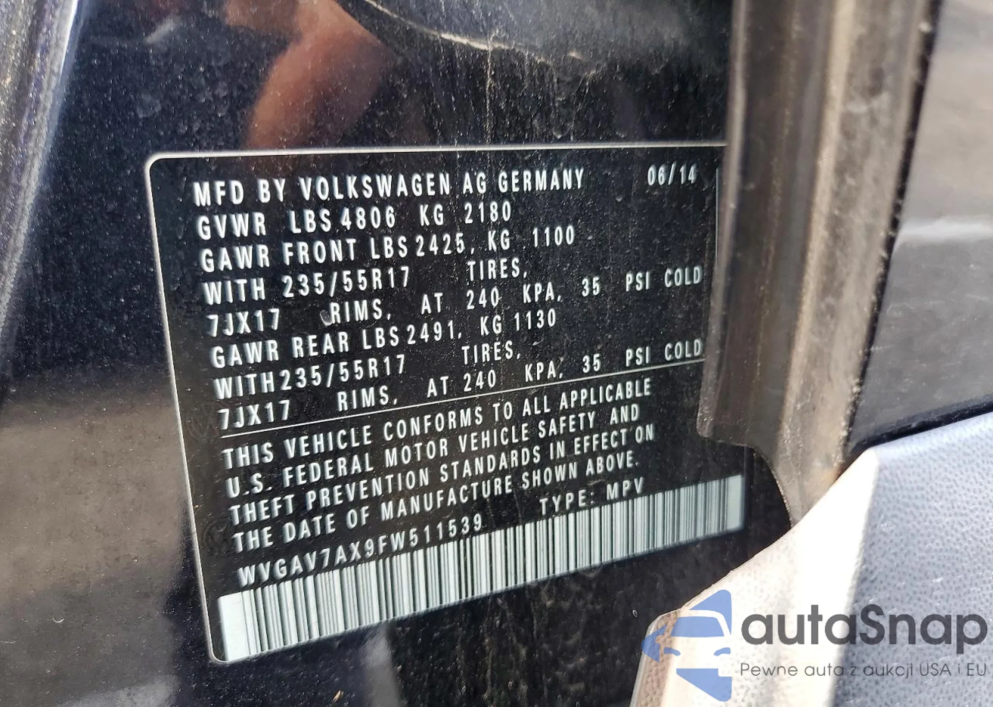 • VIN WVGAV7AX9FW511539