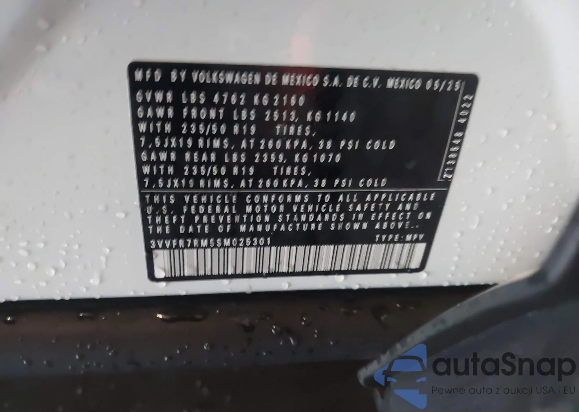 • VIN 3VVFR7RM5SM025301
