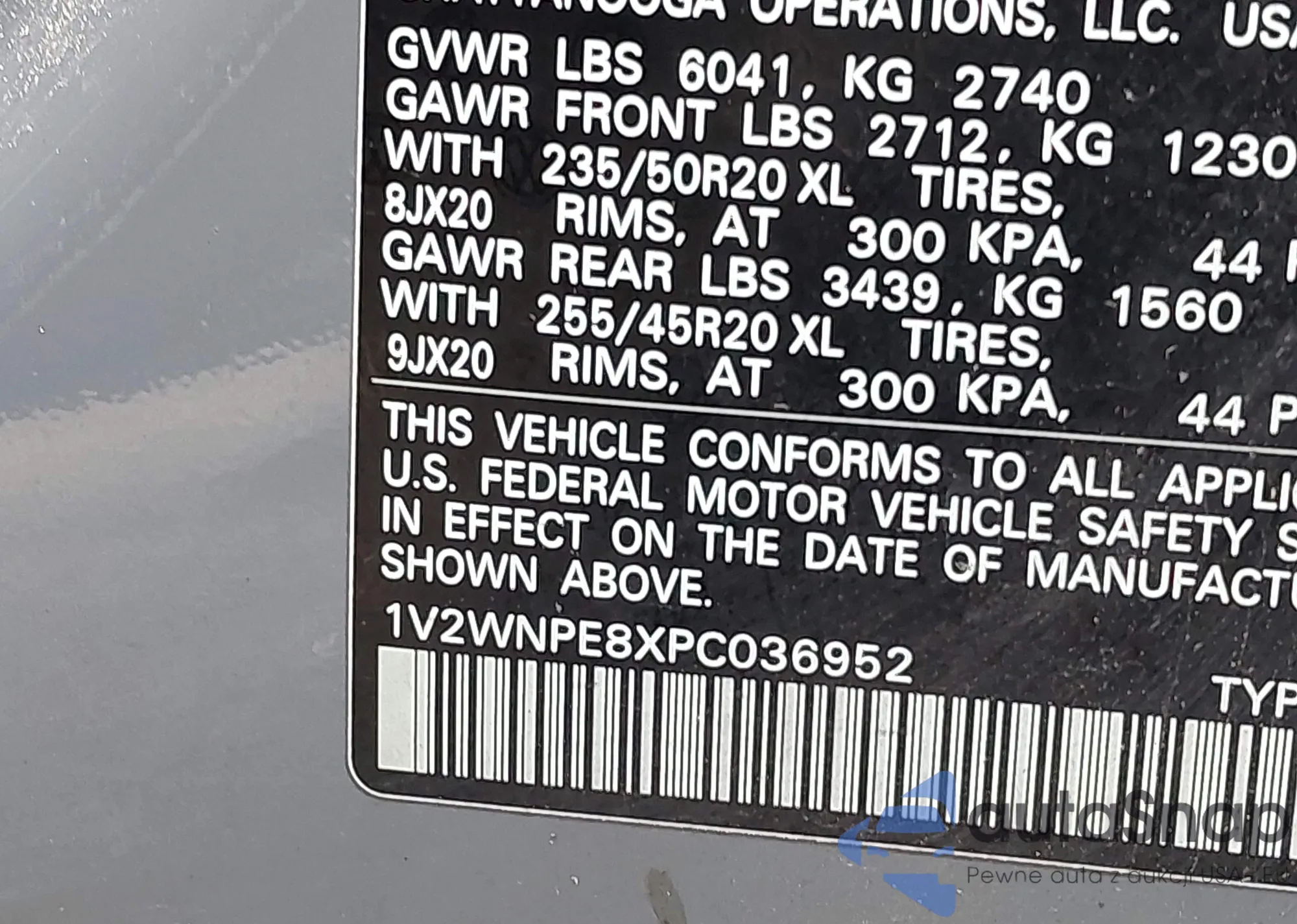 • VIN 1V2WNPE8XPC036952