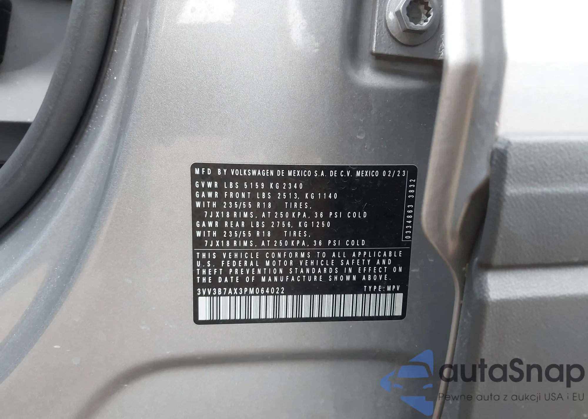 LOT: 43801893 VIN: 3VV3B7AX3PM064022