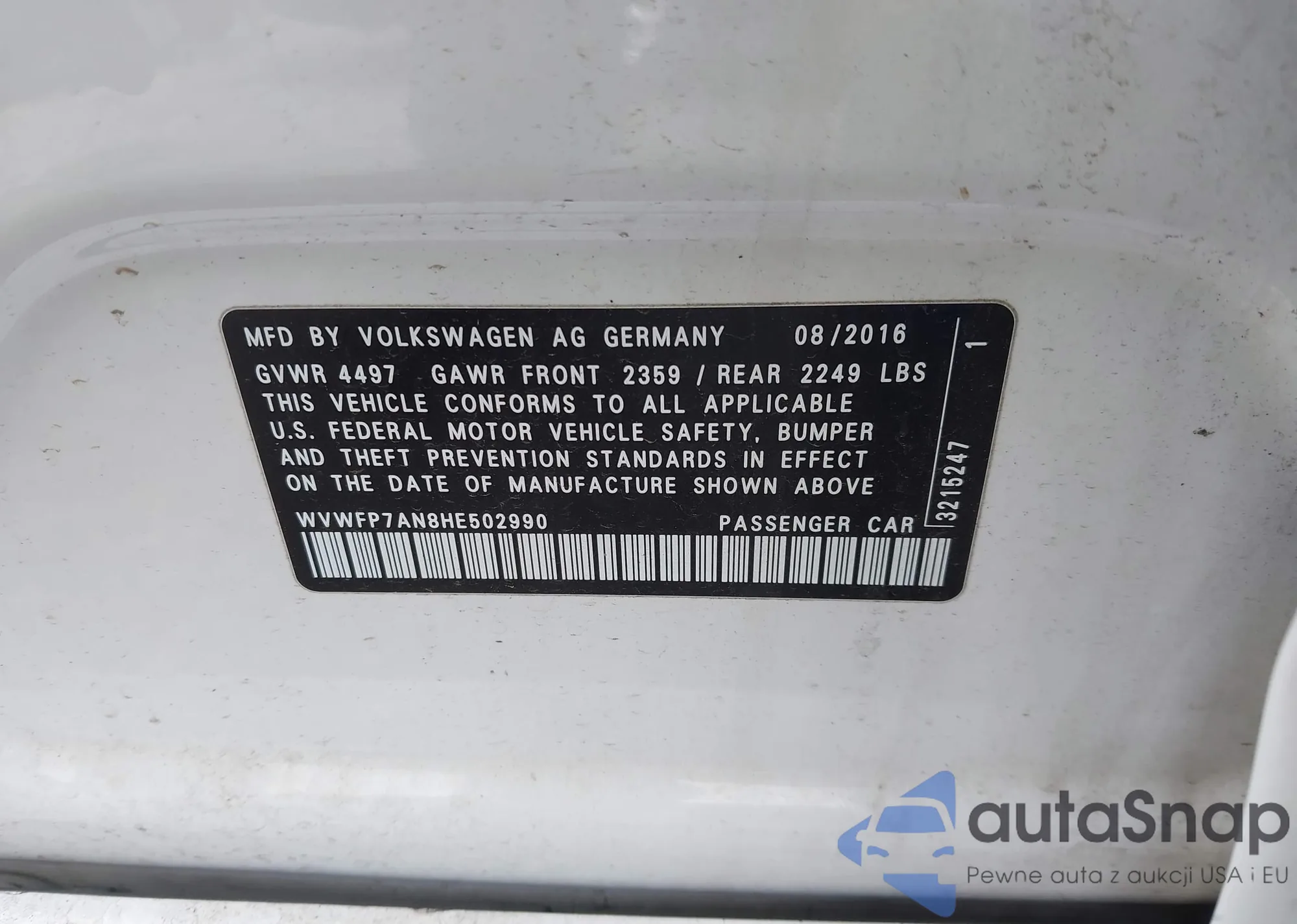 • VIN WVWFP7AN8HE502990