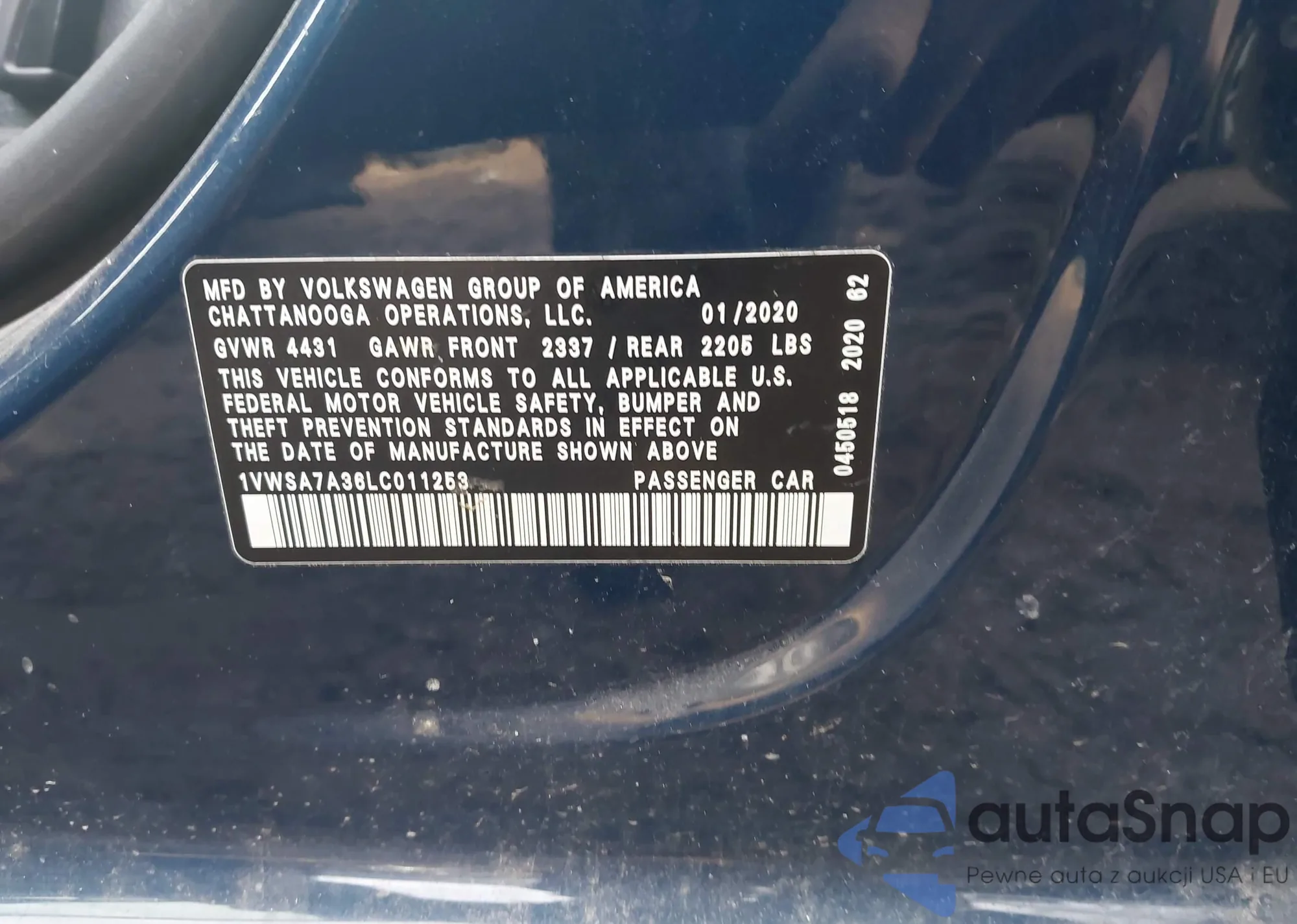 LOT: 44016339 VIN: 1VWWA7A35LC020821