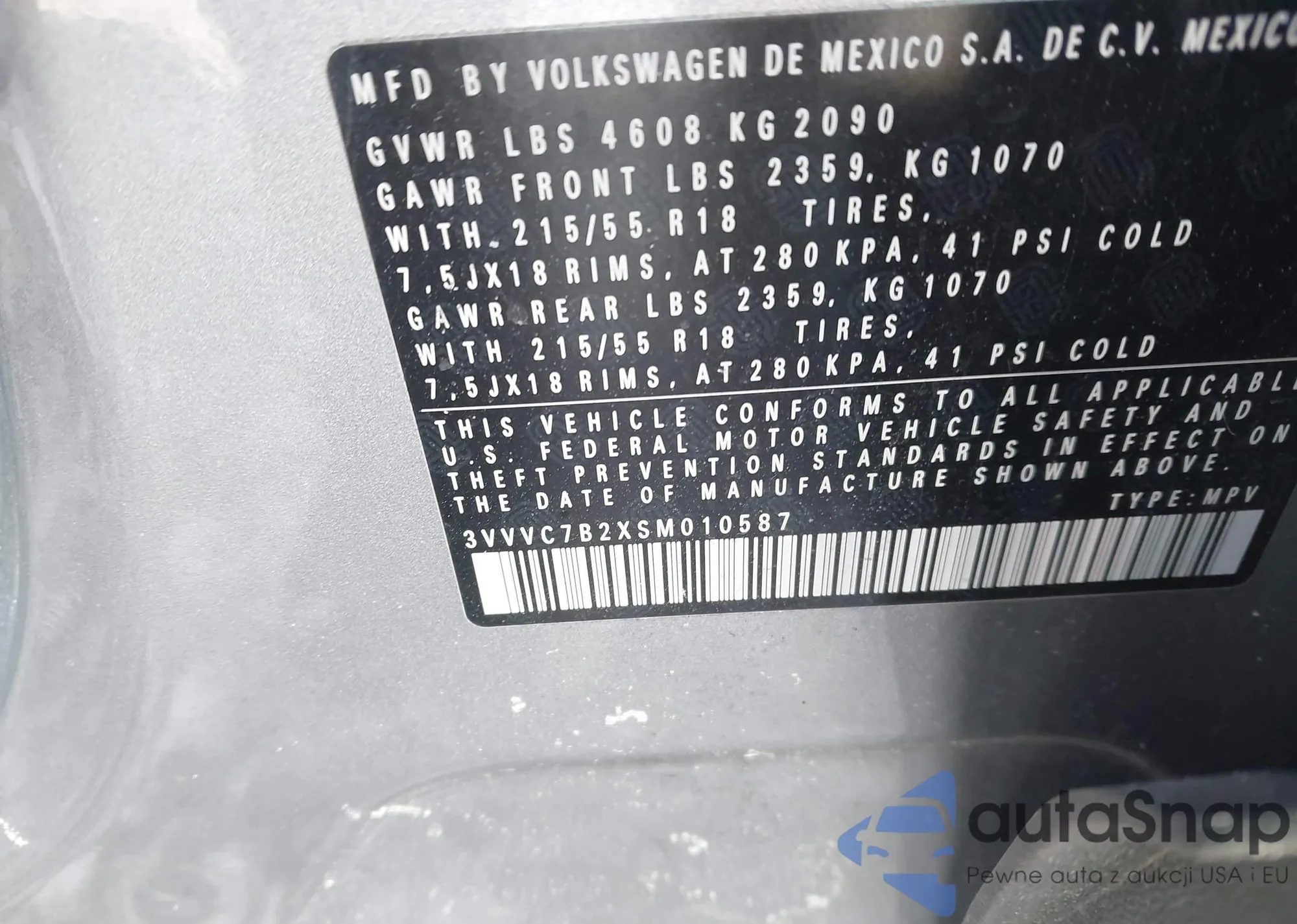 • VIN 3VVSC7B2XSM017252