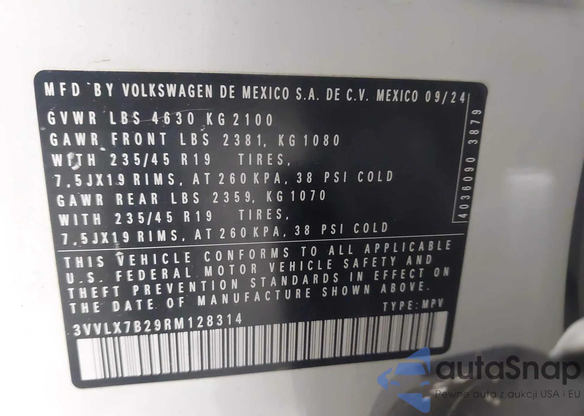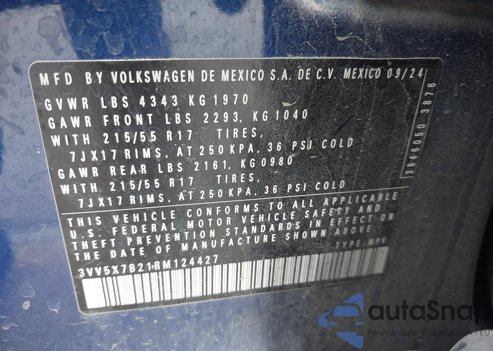 • VIN 3VV5X7B21RM124427