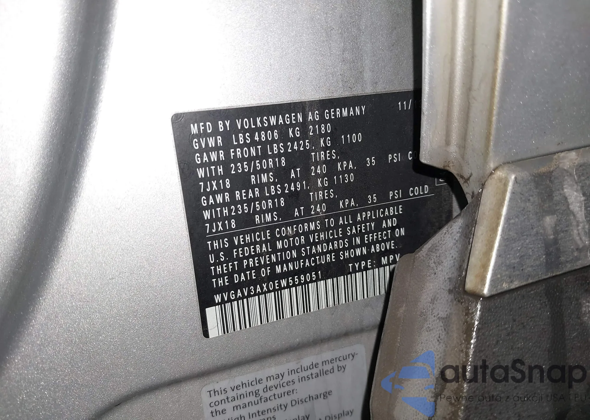 • VIN WVGAV3AX0EW559051
