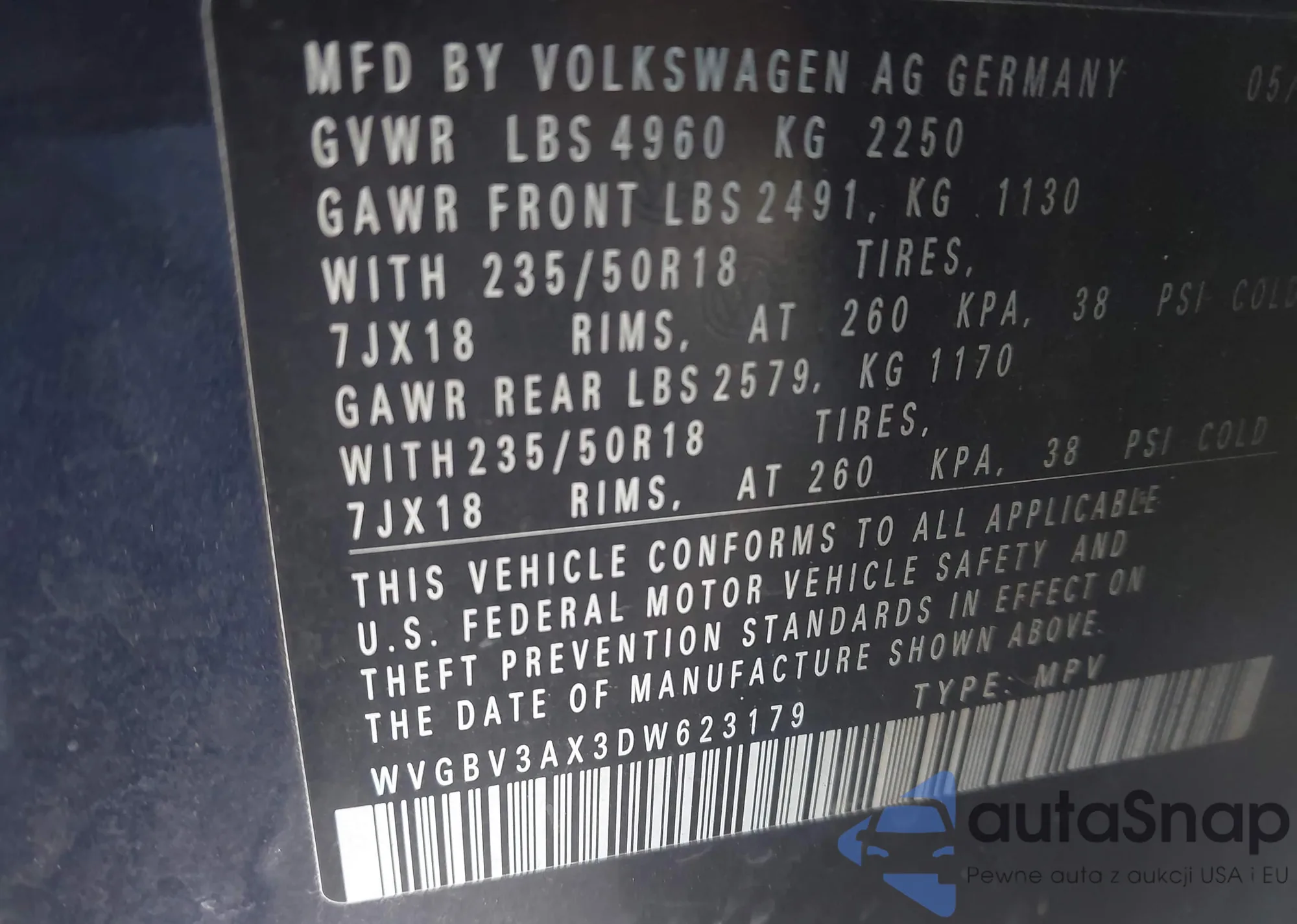 • VIN WVGBV3AX3DW623179