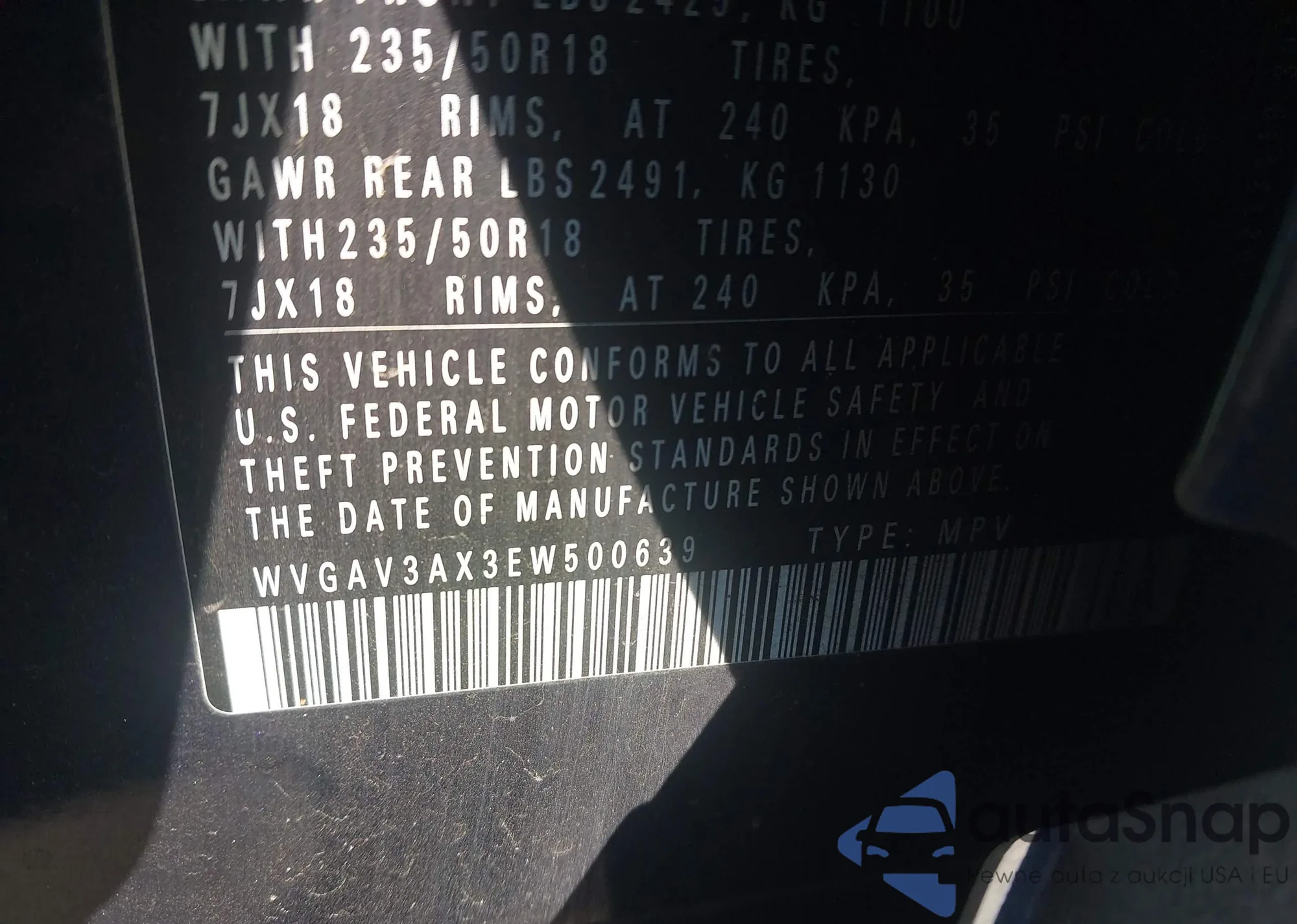 LOT: 44166891 VIN: WVGAV3AX3EW500639