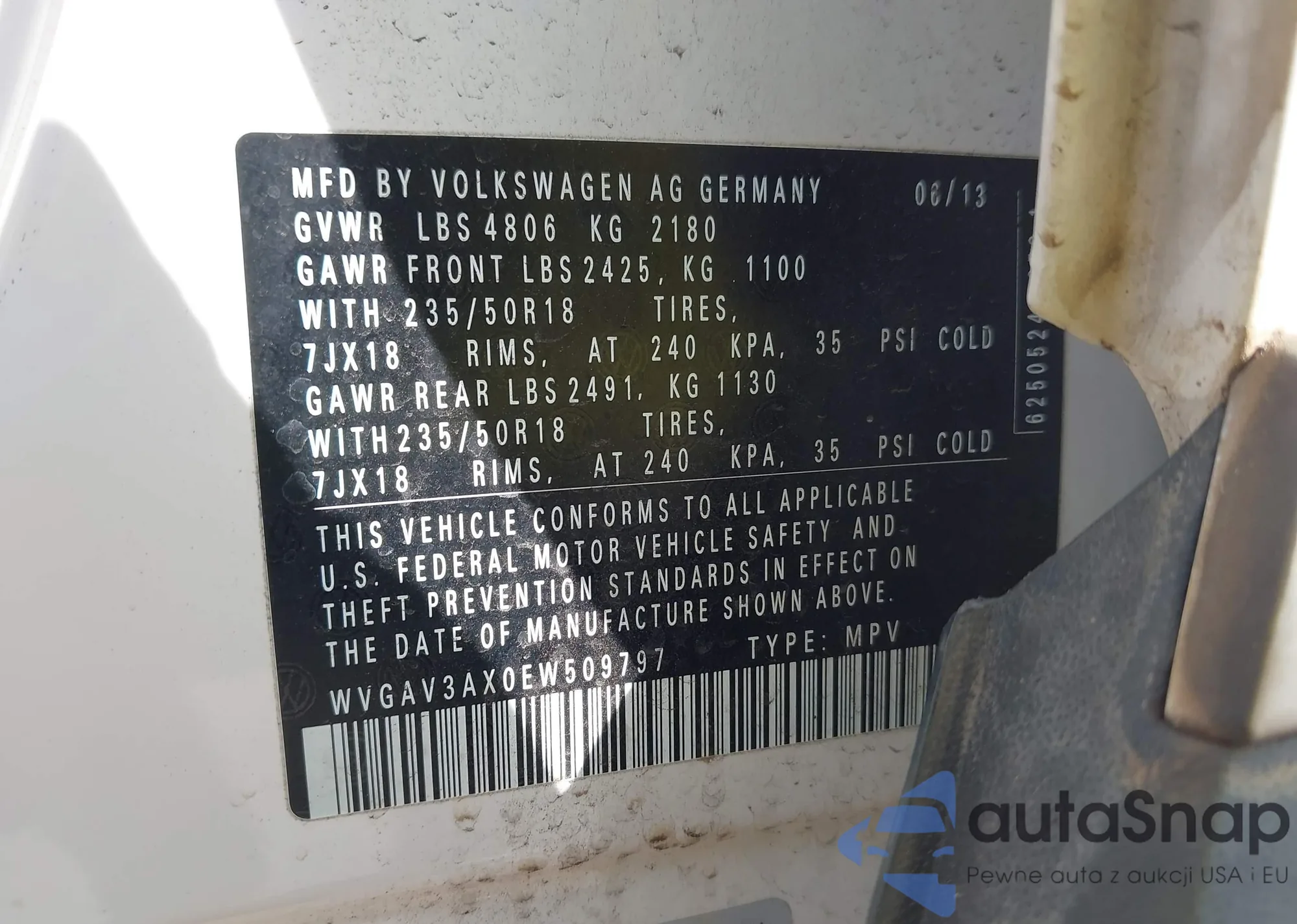 • VIN WVGAV3AX9DW578227