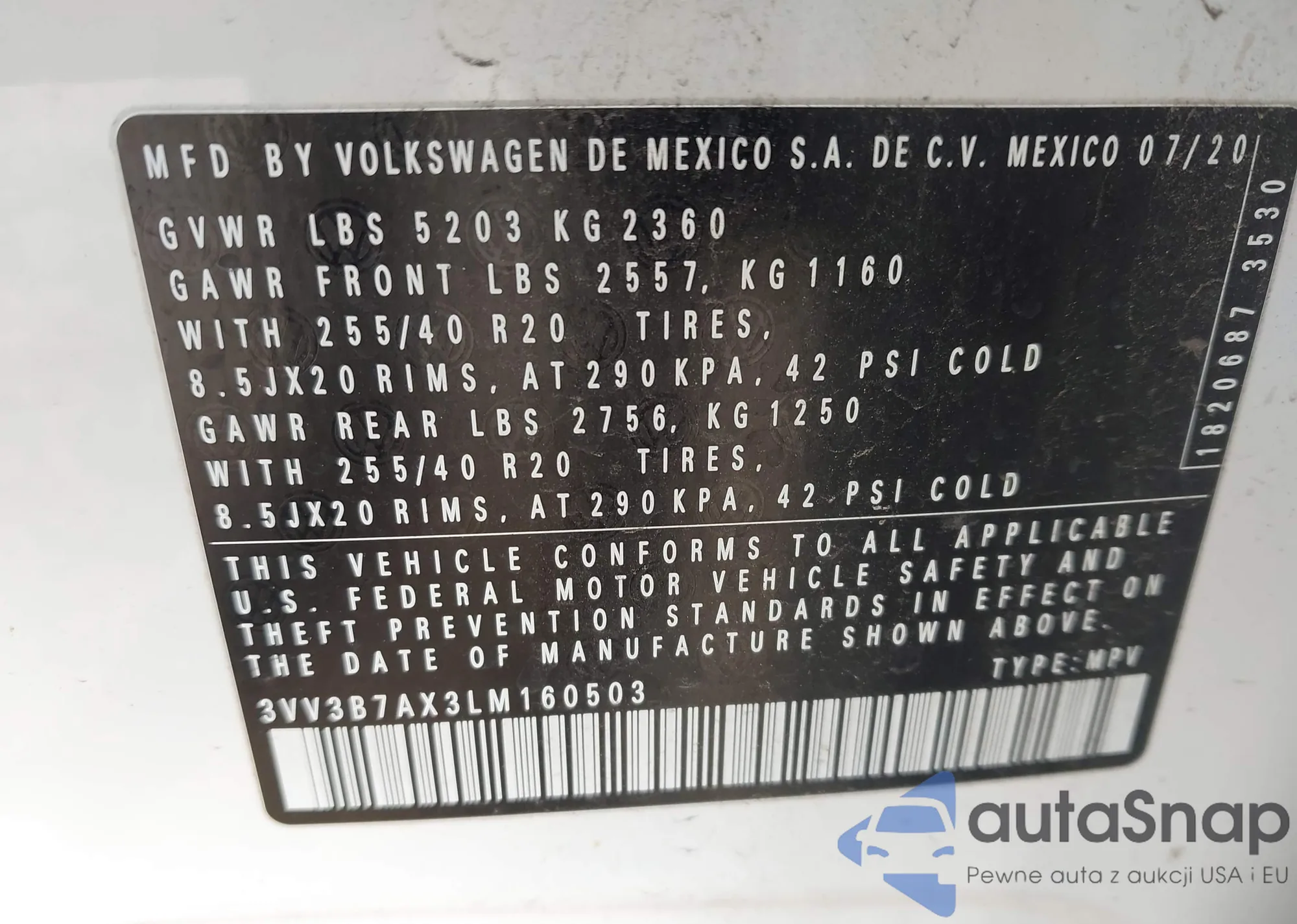 • VIN 3VV3B7AX3LM160503