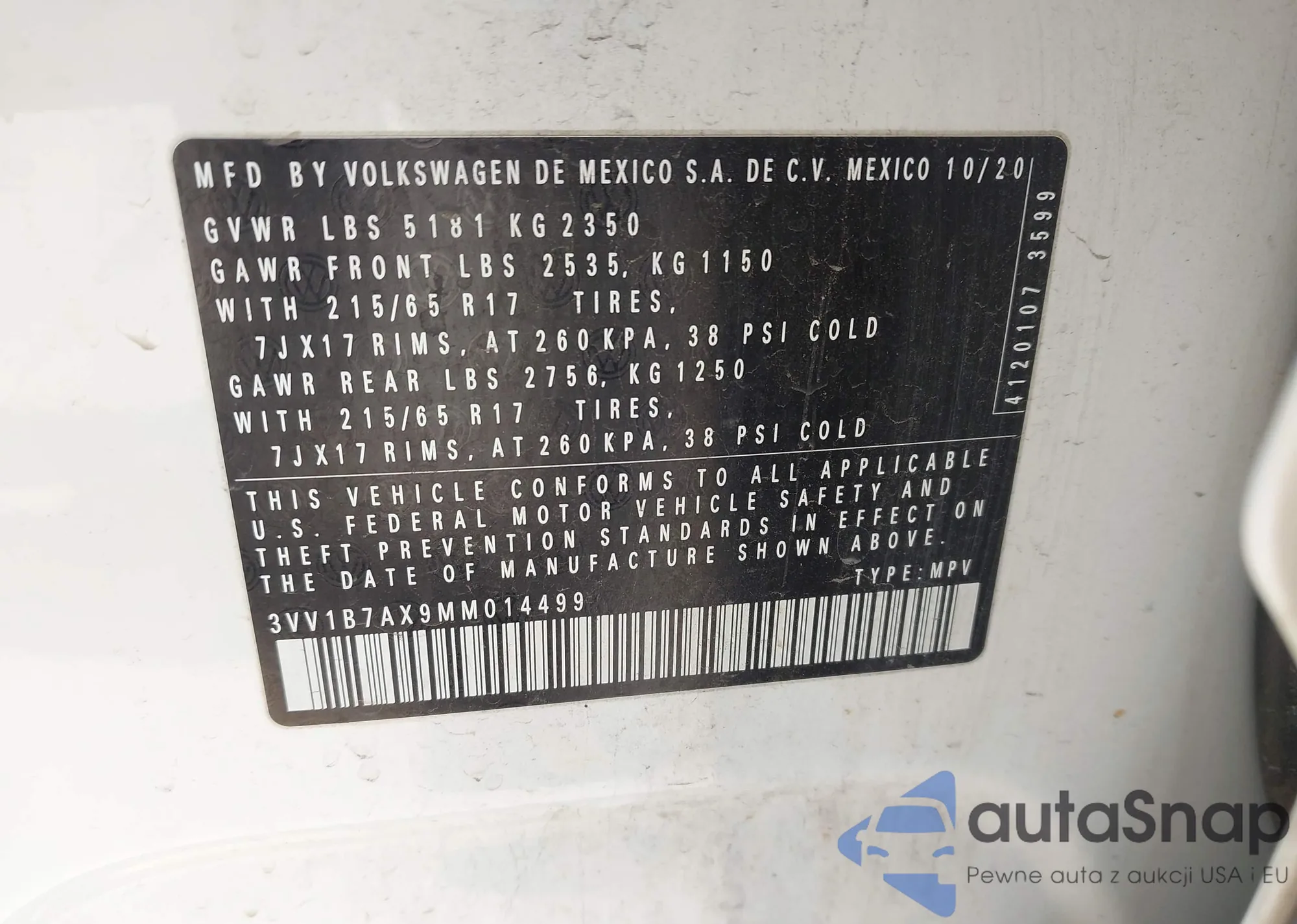 • VIN 3VV1B7AX9MM014499