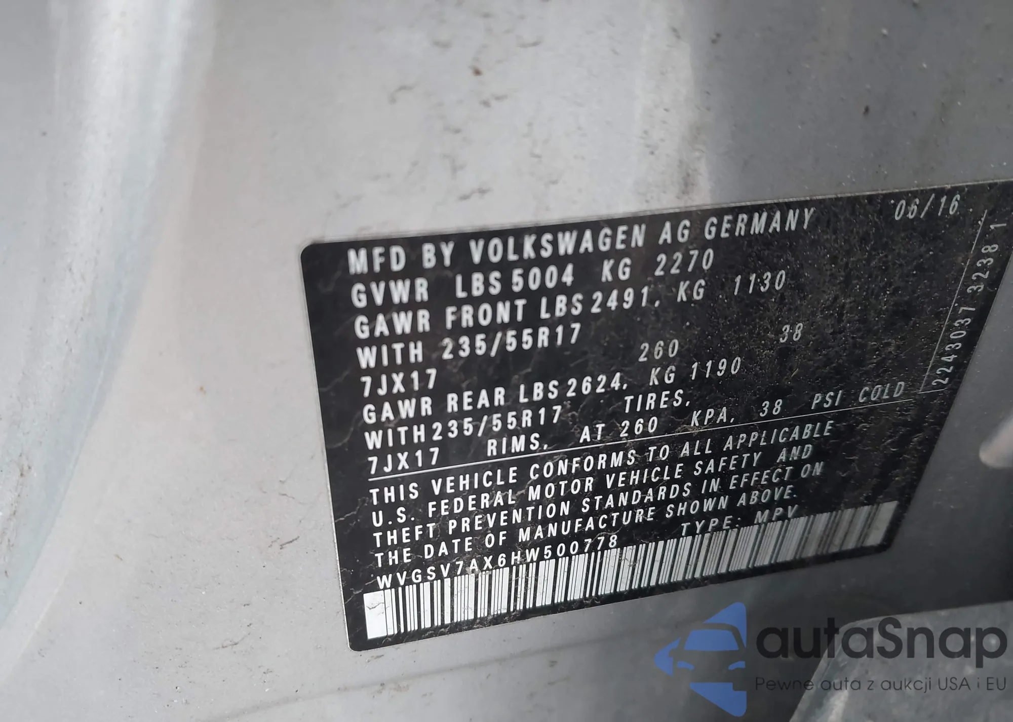 • VIN WVGSV7AX6HW500778
