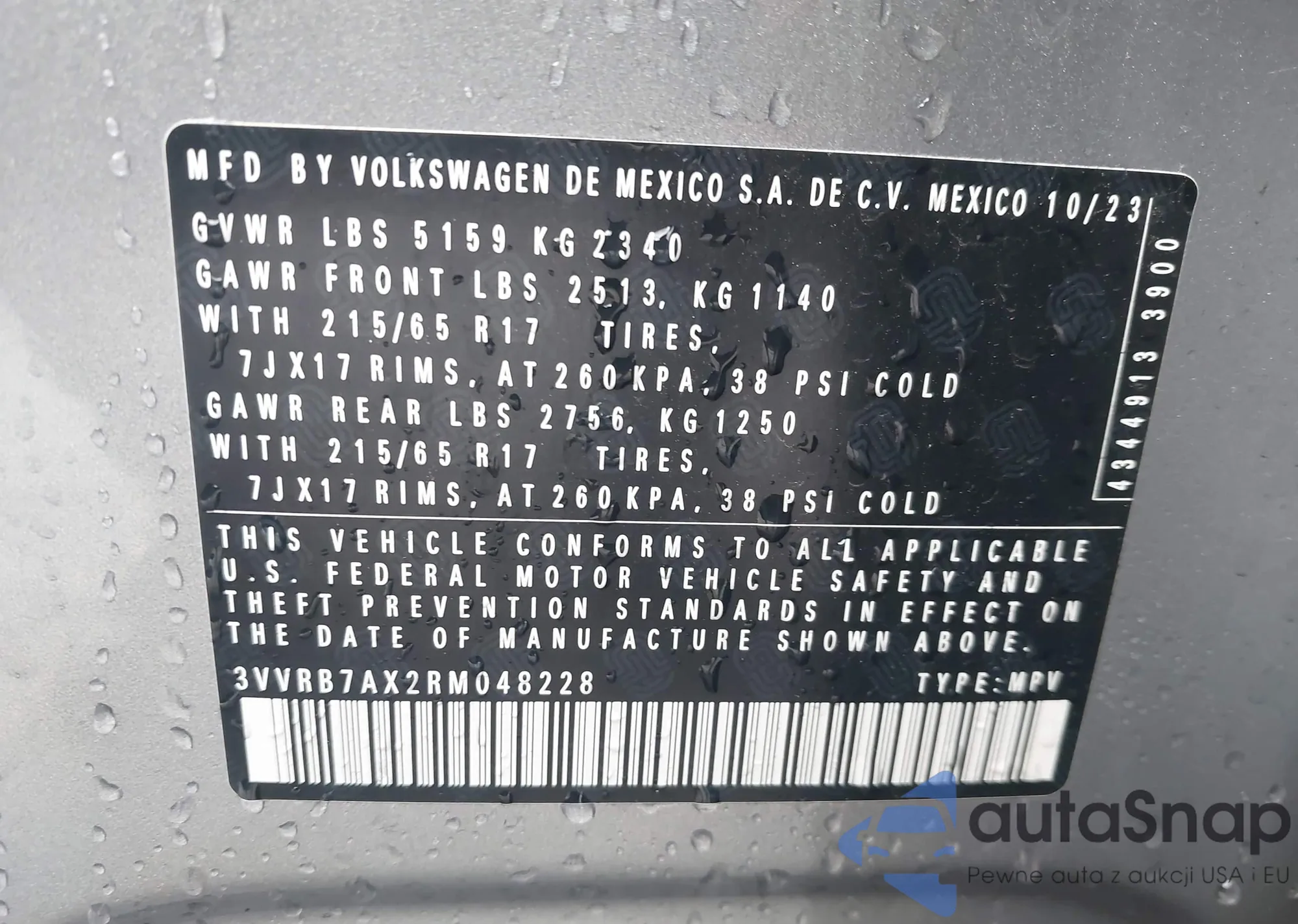• VIN 3VVRB7AX2RM048228