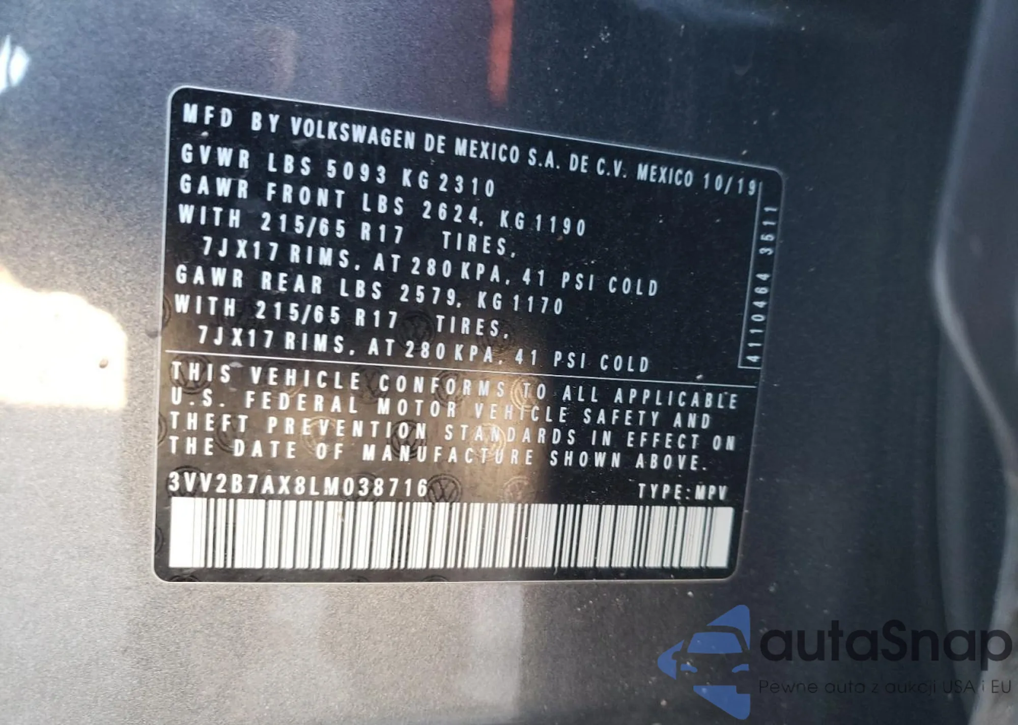 • VIN 3VV2B7AX8LM038716