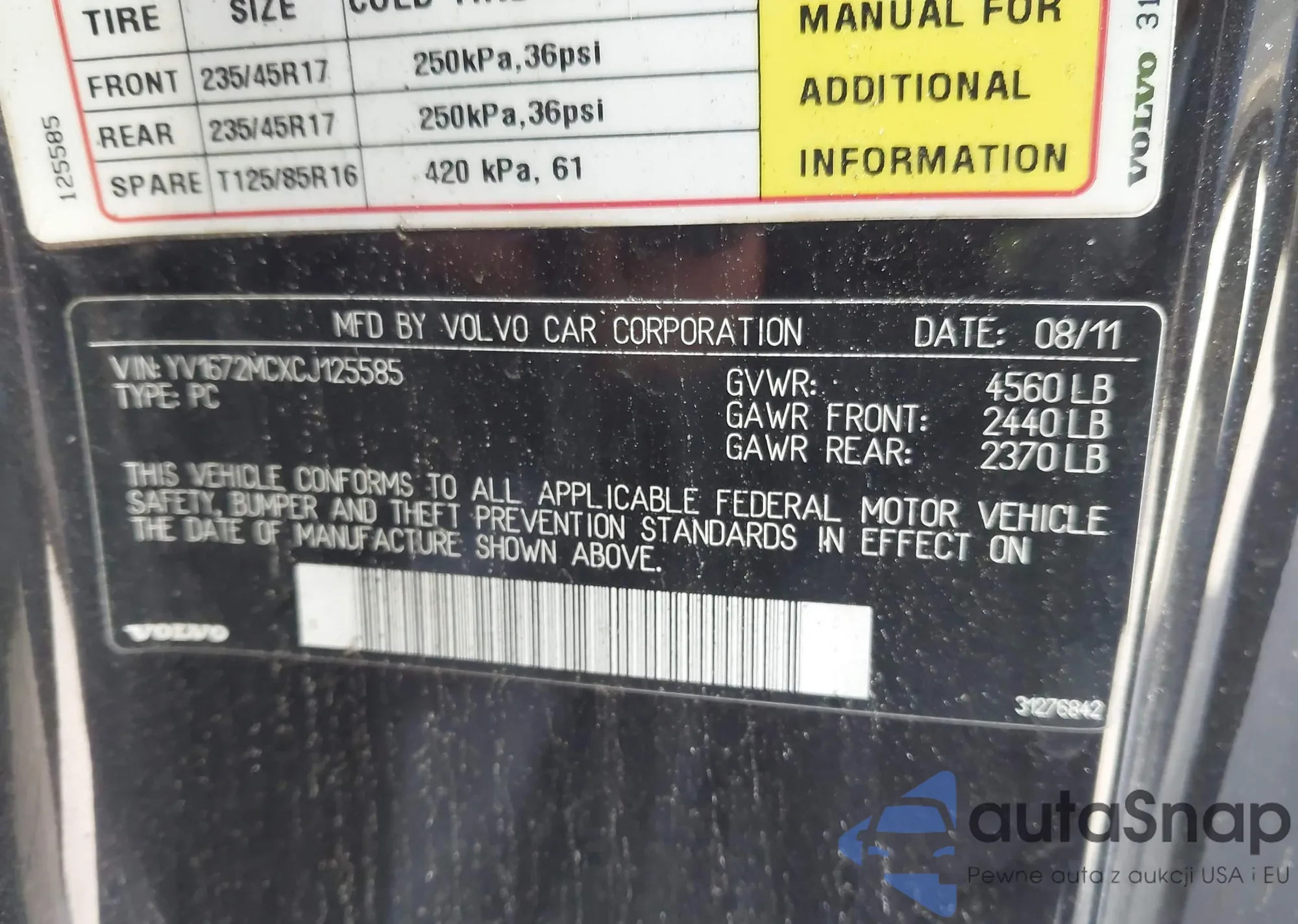 • VIN YV1672MCXCJ125585