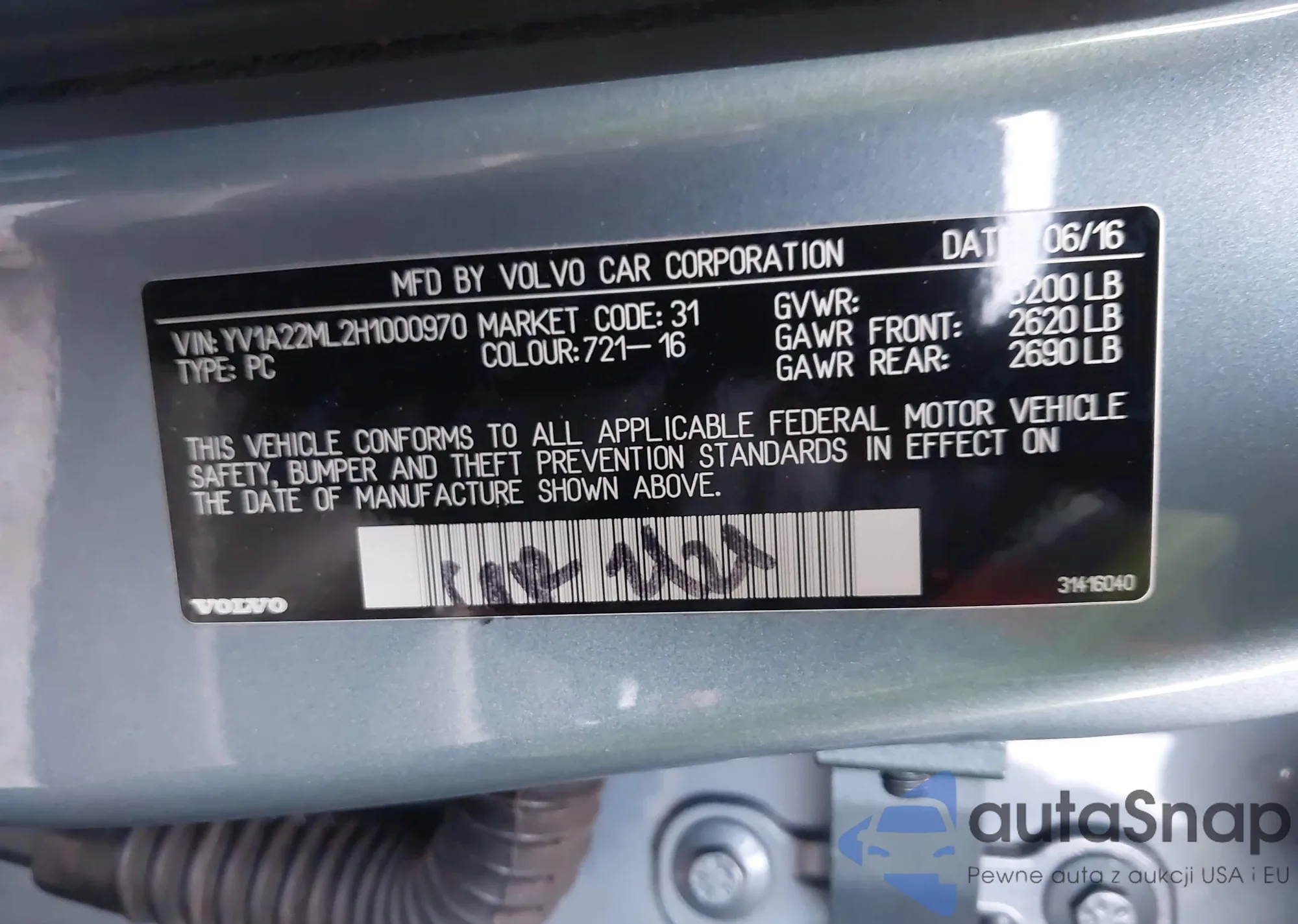 LOT: 43349902 VIN: YV1A22ML2H1001987