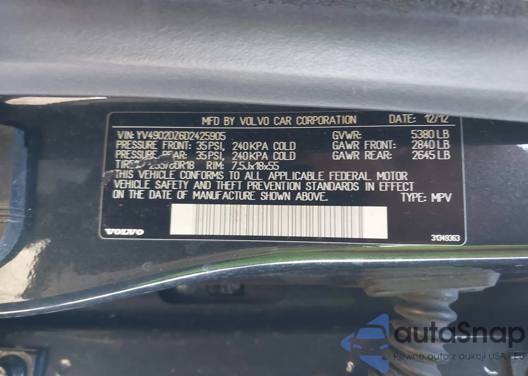 LOT: 44240690 VIN: YV4902DZ6D2425905