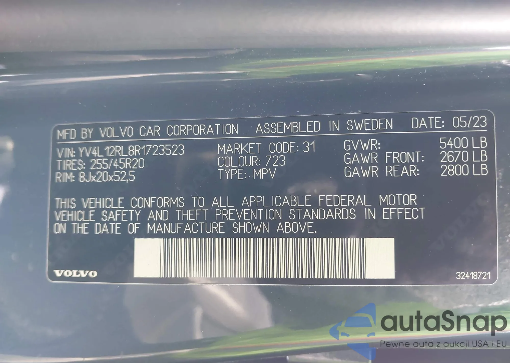 • VIN YV4L12RL8R1723523