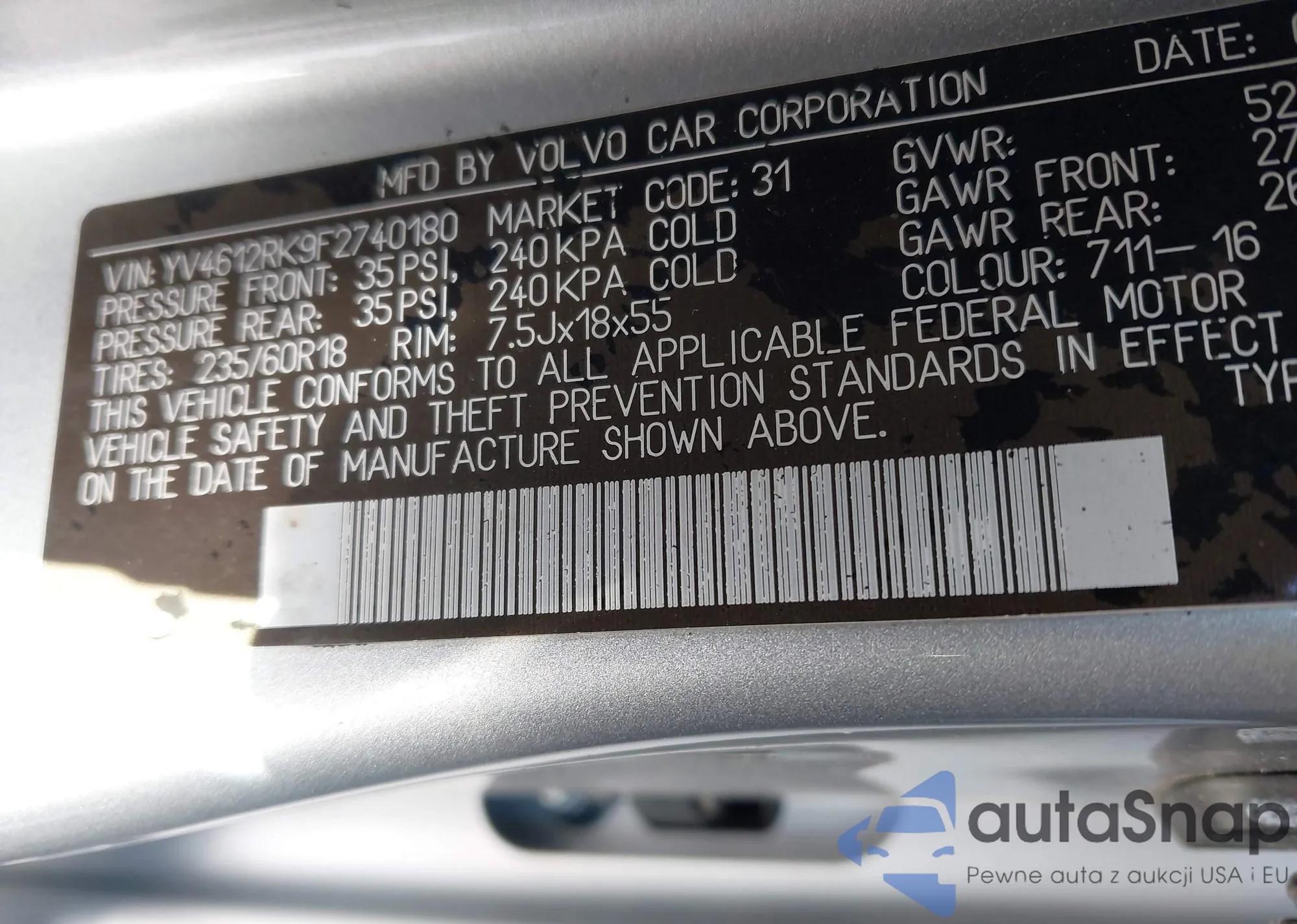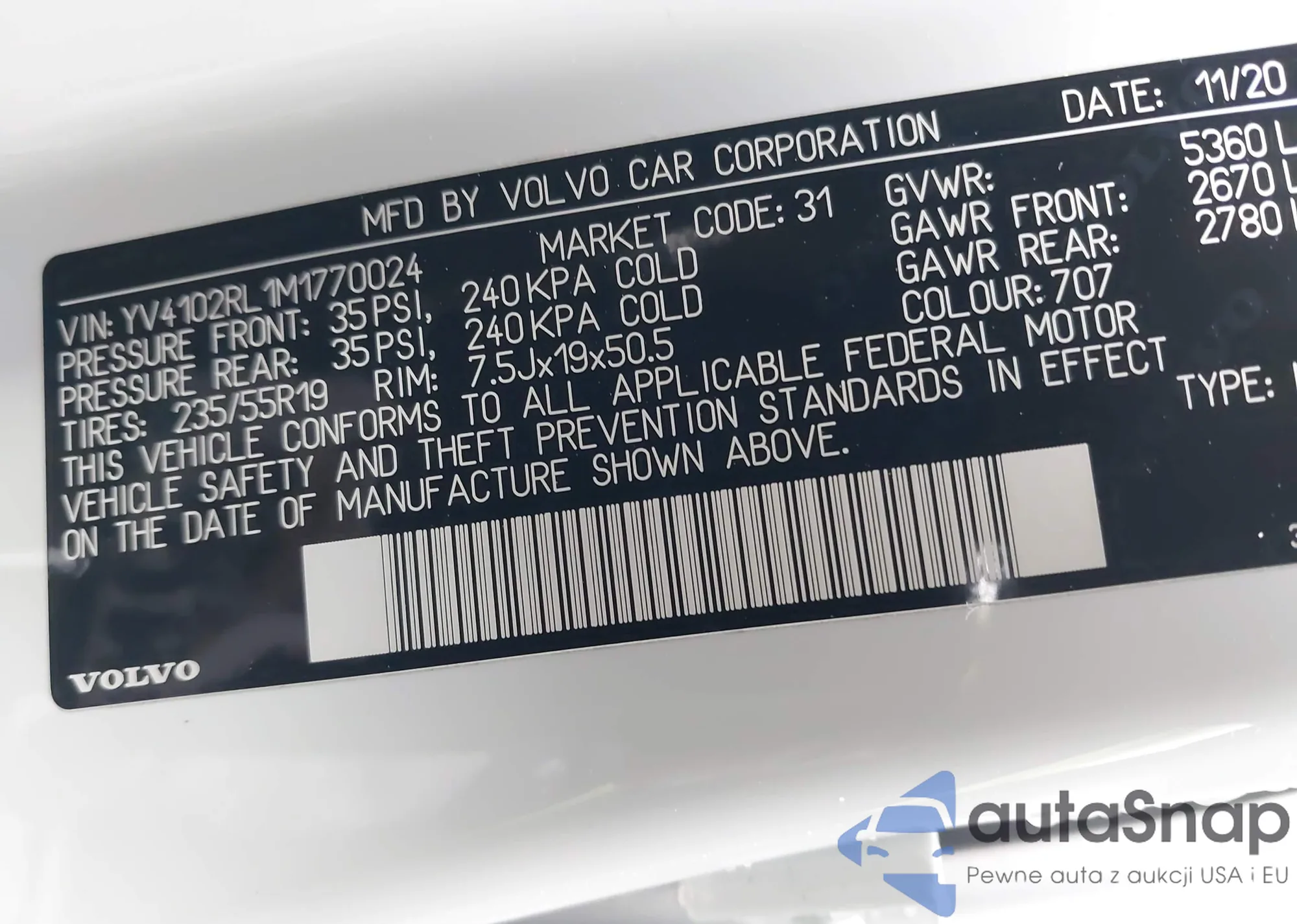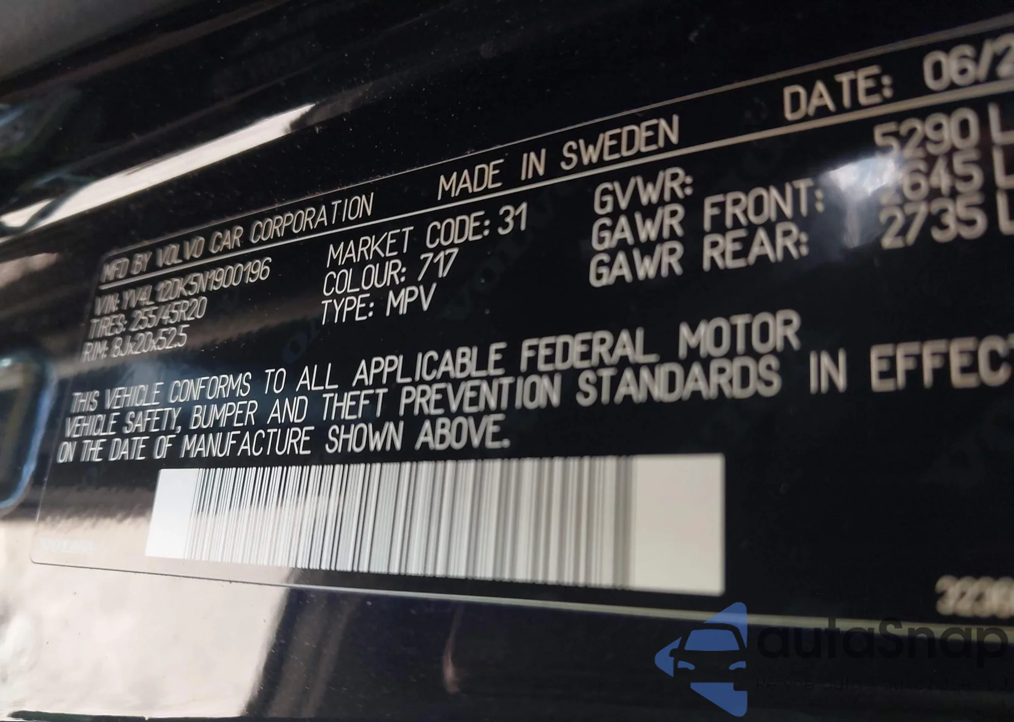 • VIN YV4L12RK0N1904696