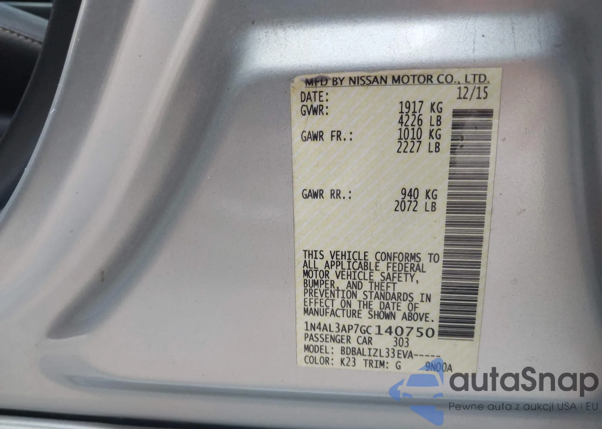 • VIN 1N4AL3AP7GC140750